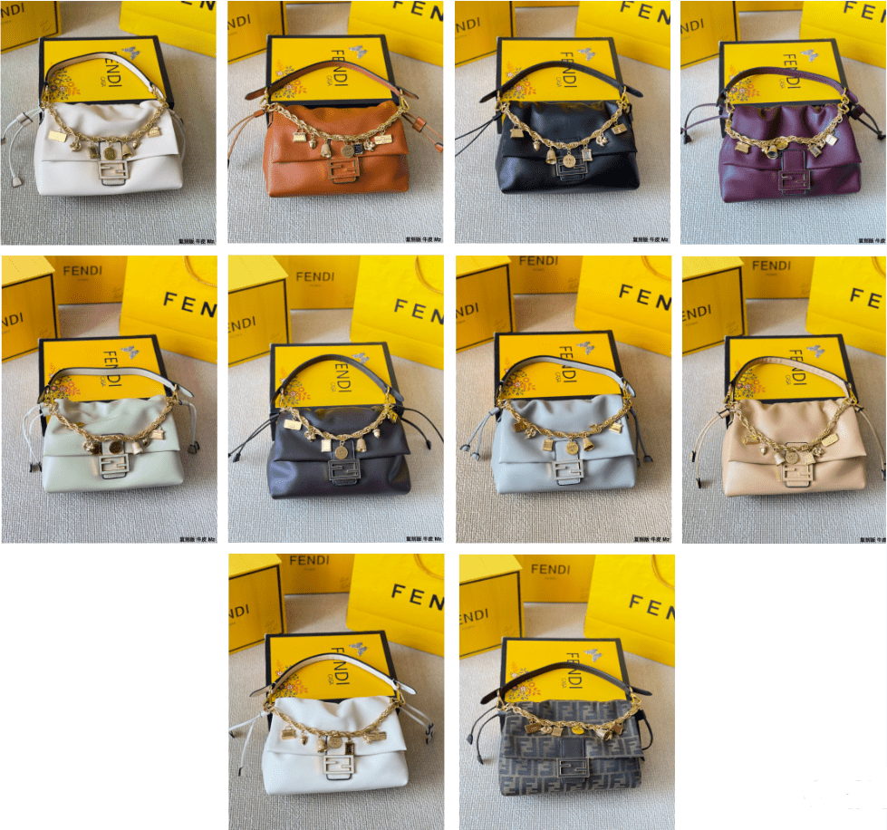 This Fendi bucket bag is crafted from premium calfskin leather, featuring iconic chain detailing, charm accents, and a size of 28×18cm in a range of elegant hues. Embodying Fendi’s legacy of luxurious craftsmanship and distinctive design, this bag merges practical functionality with bold styling. Perfect for those who appreciate a fusion of iconic branding, tactile calfskin, and varied color options, it makes a sophisticated statement suitable for any occasion, from daily outings to fashion-forward events.