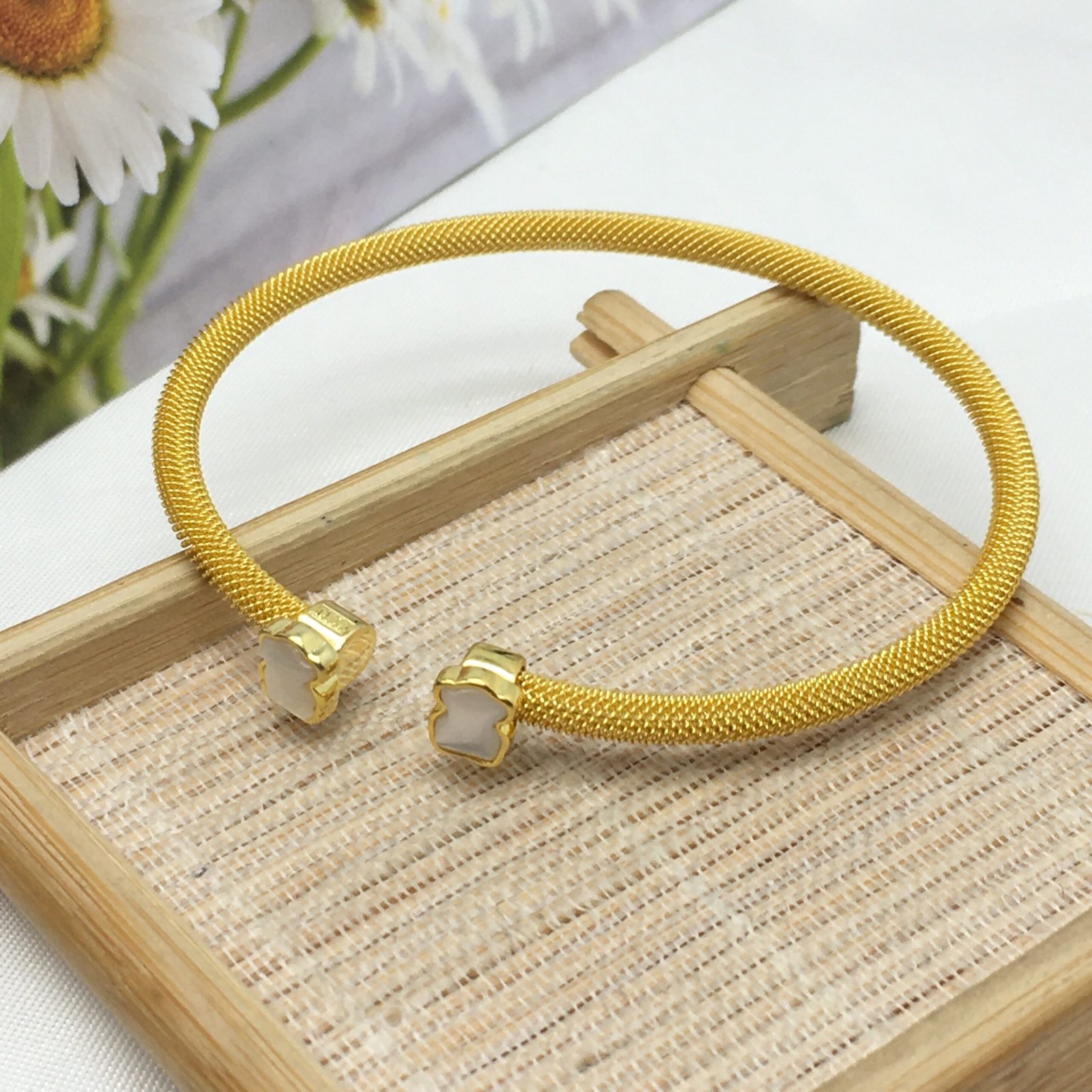 Be the first to review “Fine gold-colored IP Steel Mesh Color Bracelet with Howlite” Cancel reply