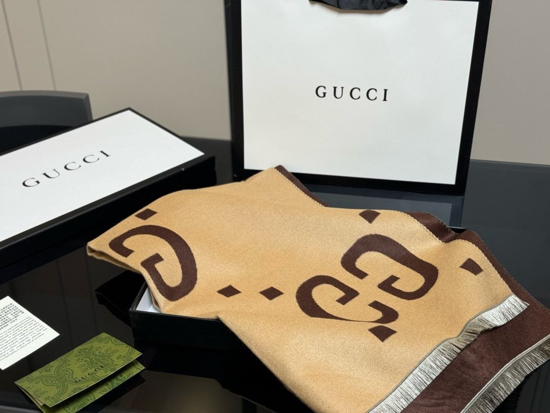 Home Scarf Gift bag with box size:45*190cm Cool down! I really need a scarf at night 🧣 Gucci Ace Scarf ! The first scarf that must be planted with grass 🧣