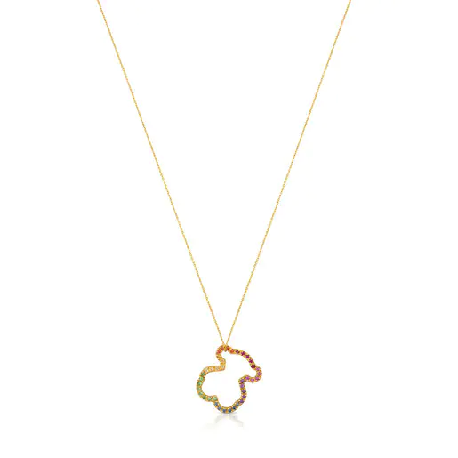 Gold Icon Necklace with multicolor Gemstones medium Bear motif