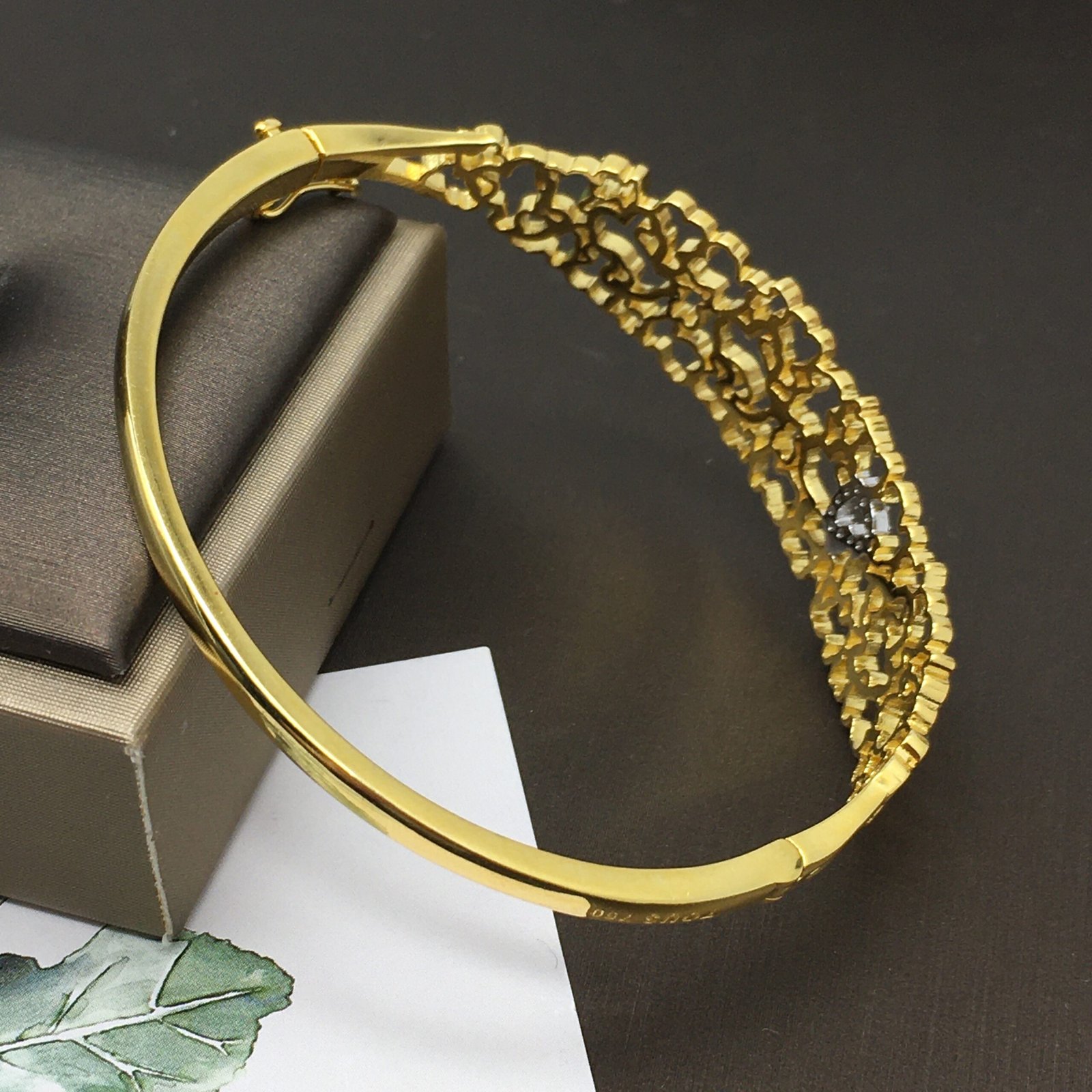 TOUS Milosos bangle in 18kt yellow gold with motif in 18kt white gold and diamonds. Total weight 0.02ct. Width: 1.4cm. Size: 5mm.