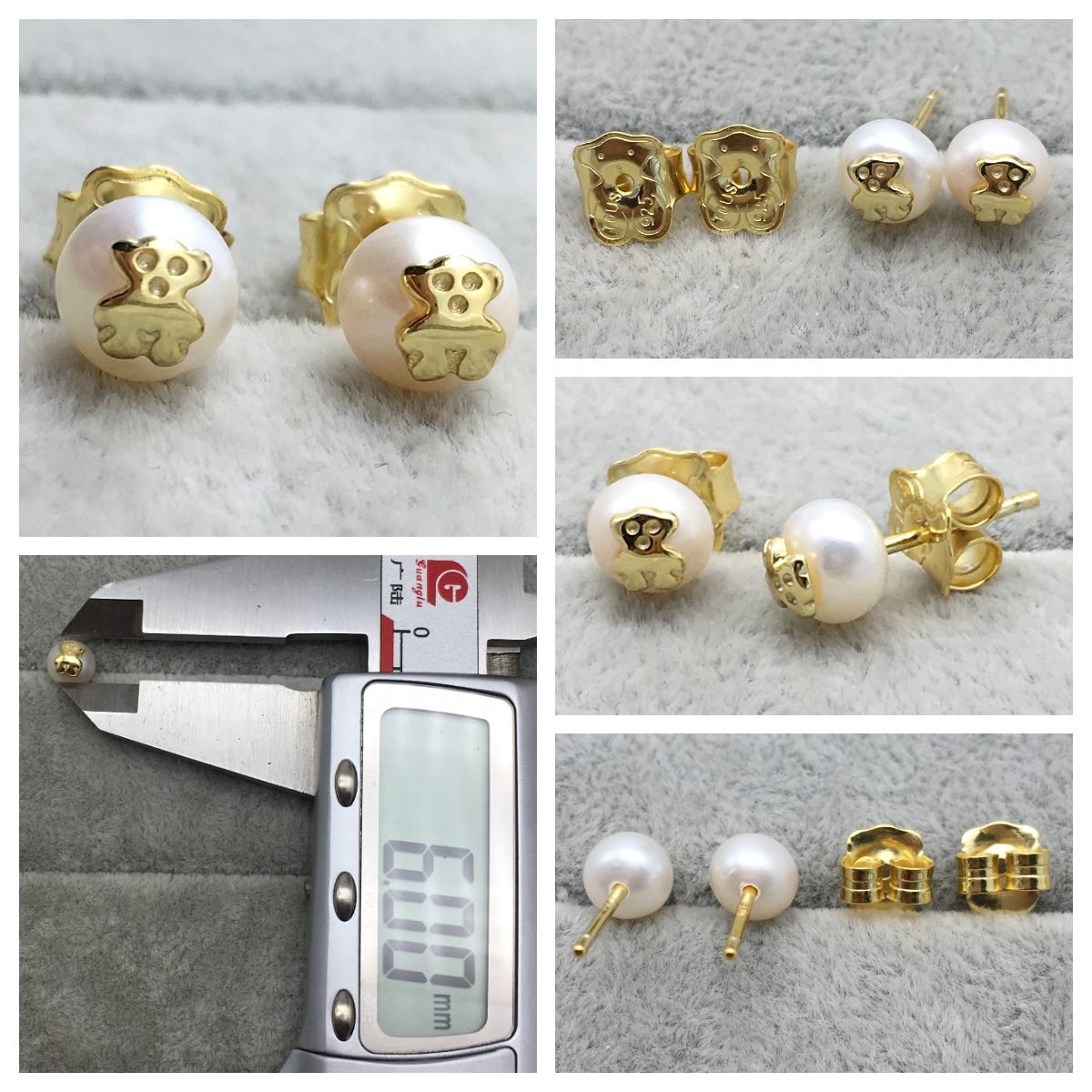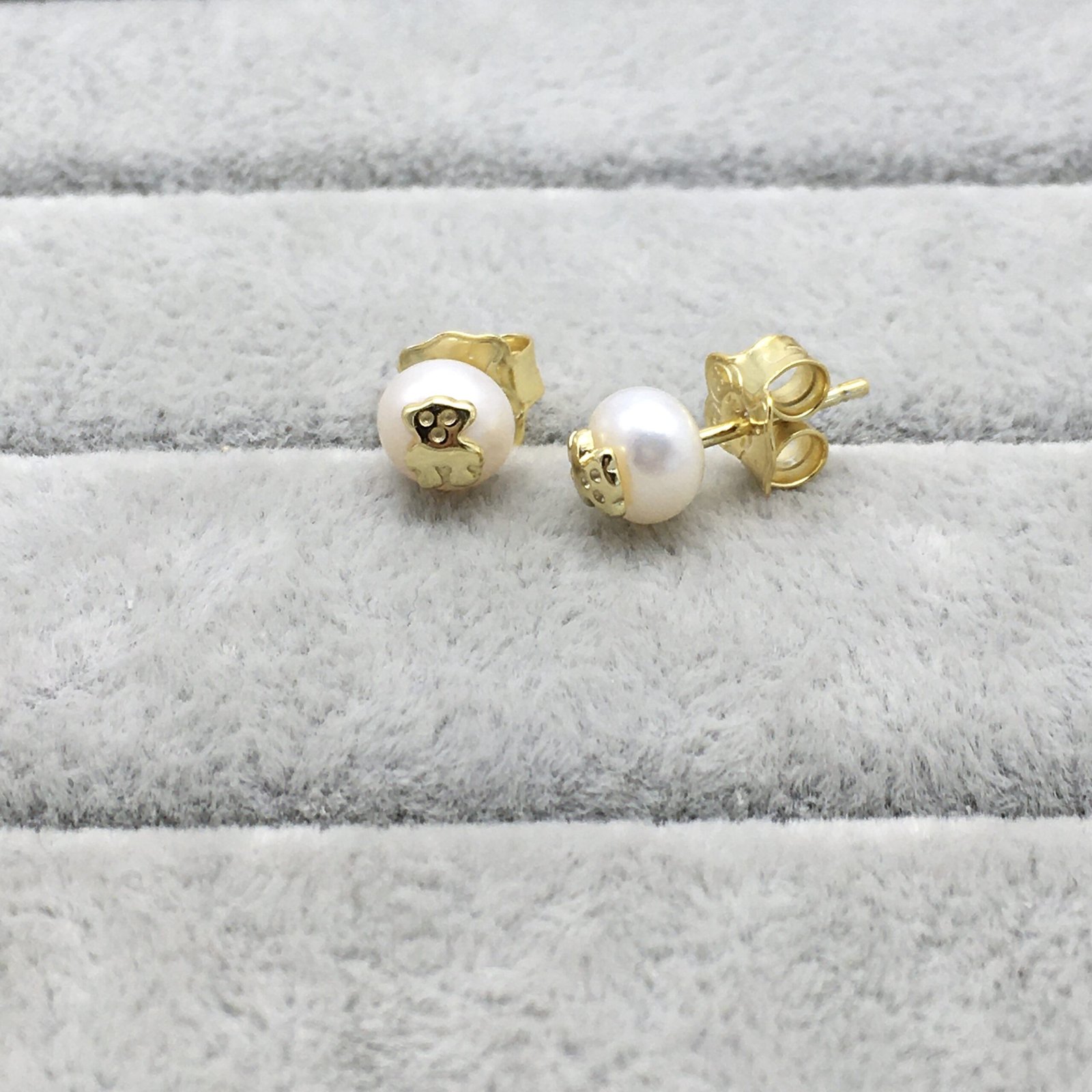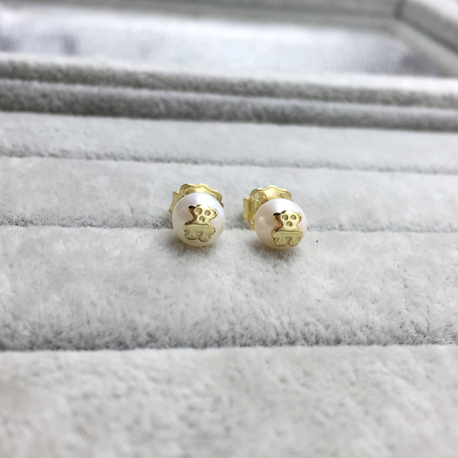 TOUS Bear earrings in 18kt yellow gold with 6mm cultured freshwater pearl. Bear: 4.5mm.