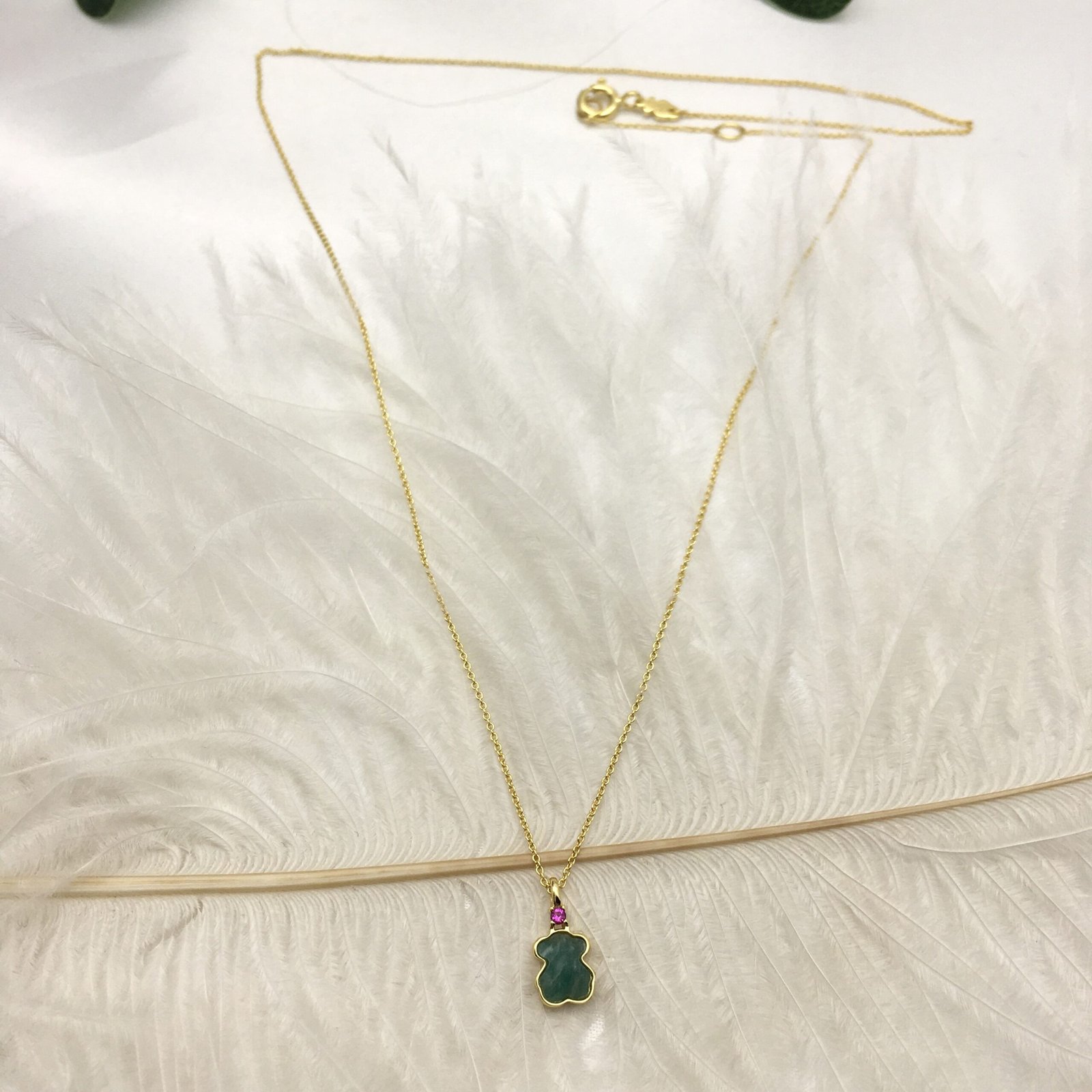 Gold TOUS Color Necklace with Amazonite and Ruby