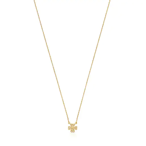 Gold TOUS Good Vibes clover Necklace with Diamonds