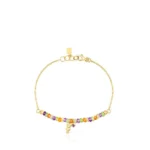 TOUS Teddy Bear bracelet in 18kt gold and amethyst, peridot, carnelian and citrine gemstones with an amethyst detail and a 6 mm bear motif in the center. Length: 17.5 cm.