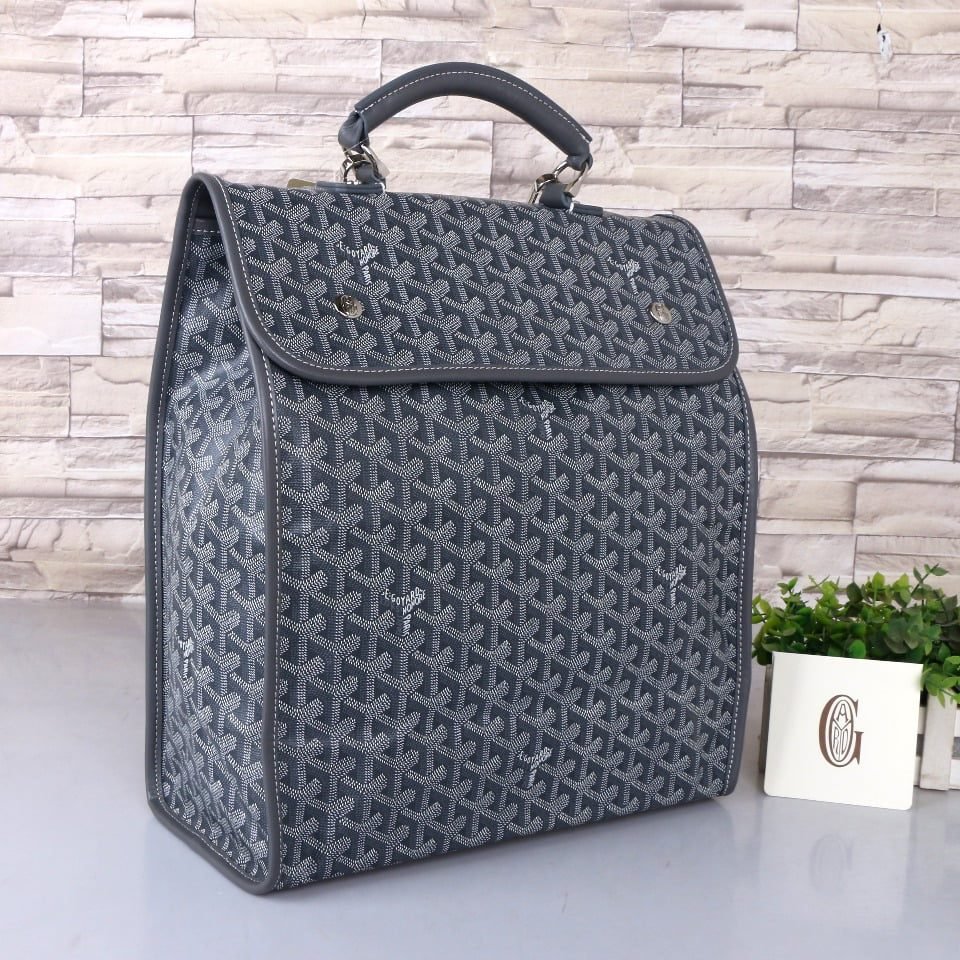 GOYARD new backpack carbon gray, explosive backpack, men and women the same, foldable, shoulder strap detachable, when the bag can also be, with leather, size: bottom length 32* width 14* height 37cm, shoulder strap adjustable!