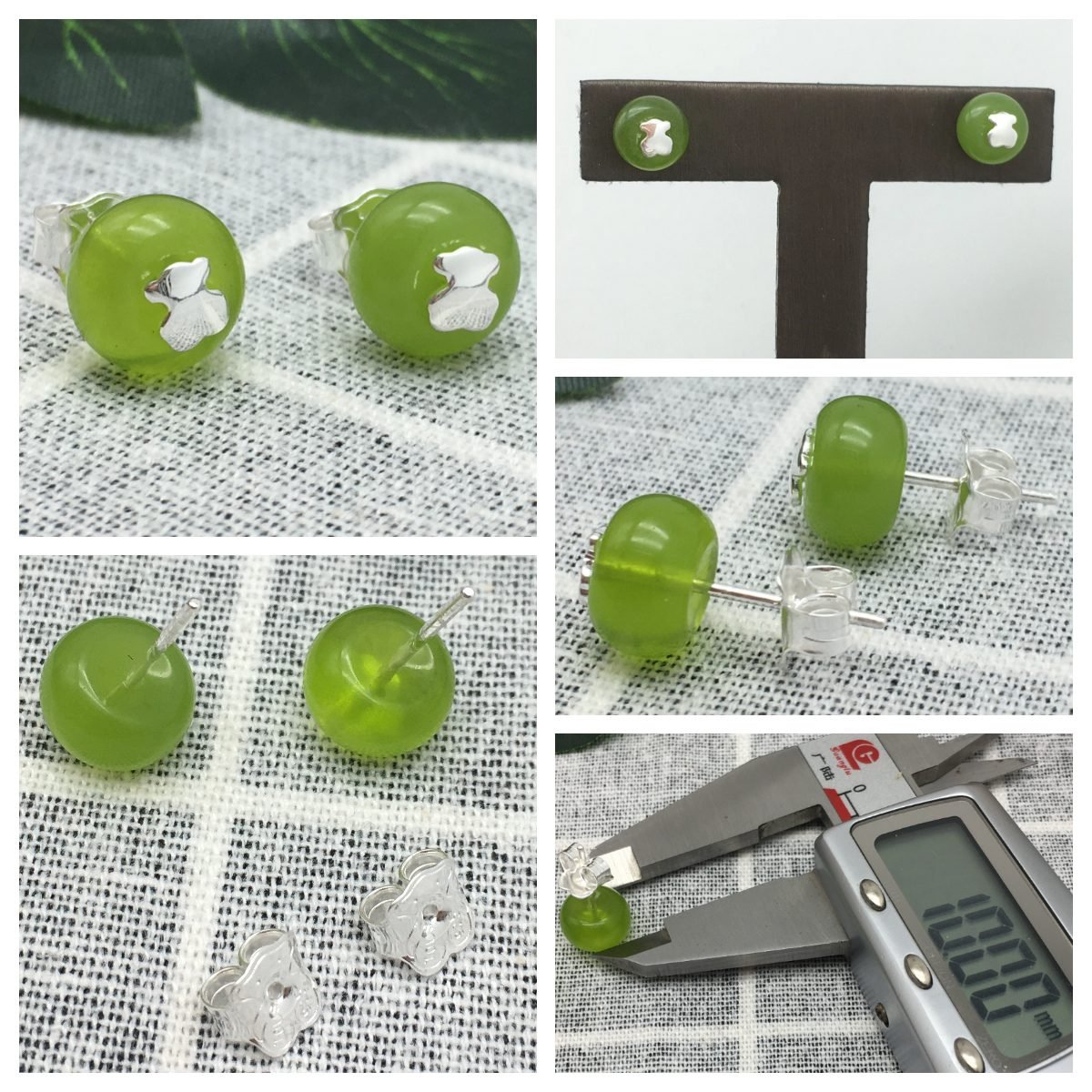 TOUS Icon Glass earrings in sterling silver and green colored Murano glass with a bear motif in sterling silver. Size: Ø10 mm. Push back.