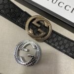 Gucci belt, classic black belt, silver buckle, thick to the touch, ultra-clear printed pattern $210.00 Original price was: $210.00.$66.69Current price is: $66.69.