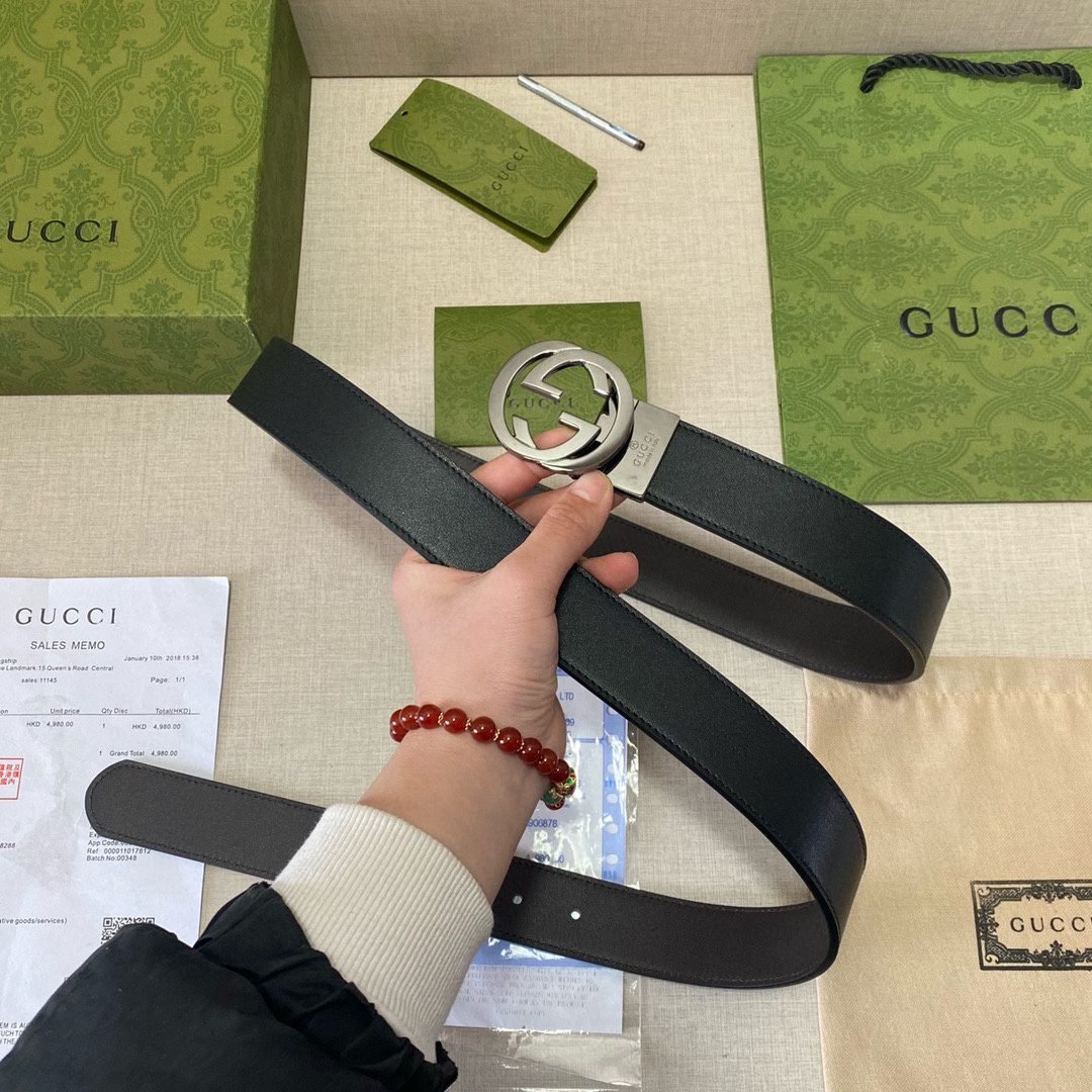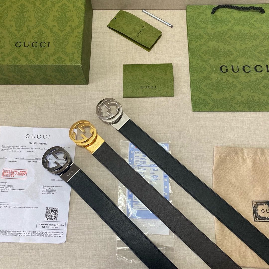 Gucci classic gold buckle black belt, soft to the touch, exquisite oil edges