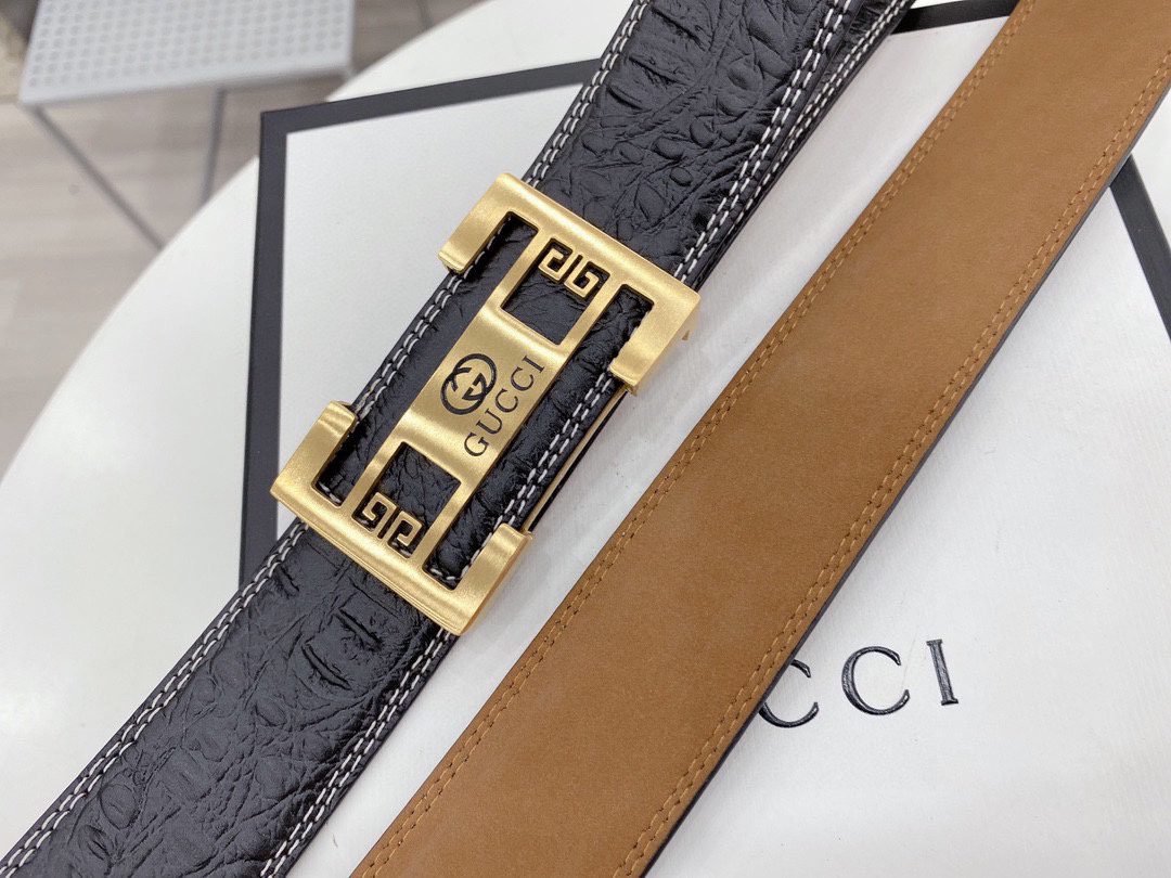 This Gucci wide black belt with silver buckle perfectly combines the brand’s classic elements with modern design. The belt adopts a wide belt design, which not only shows the composure and grandeur of the urban elite, but also ensures wearing comfort. The black leather material has been carefully polished and has a delicate touch and strong gloss. It can match any clothing to show its extraordinary taste.