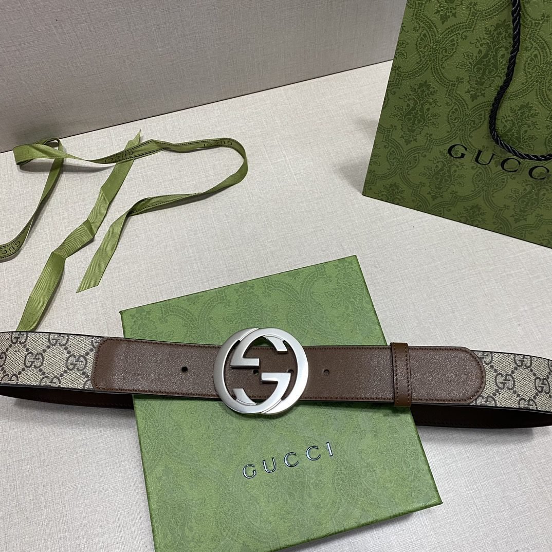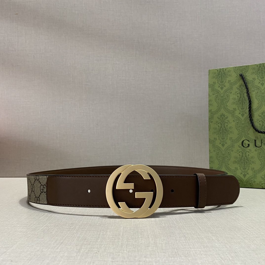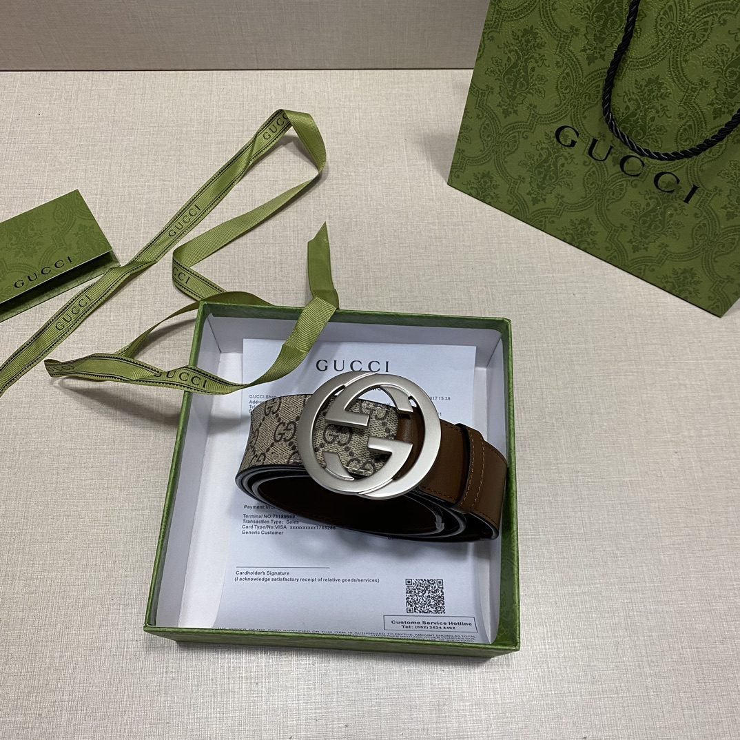 This Gucci brown and beige classic leather belt, with its unique two-color design and exquisite craftsmanship, shows the classic charm of the Gucci brand. The belt is made of high-quality leather material, soft to the touch and durable. The exquisite “GUCCI” engraved on it highlights the brand’s nobility and luxury. At the same time, the belt is paired with a green Gucci shopping bag, and the overall shape is elegant and generous, which is unforgettable at first sight.