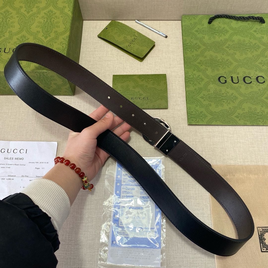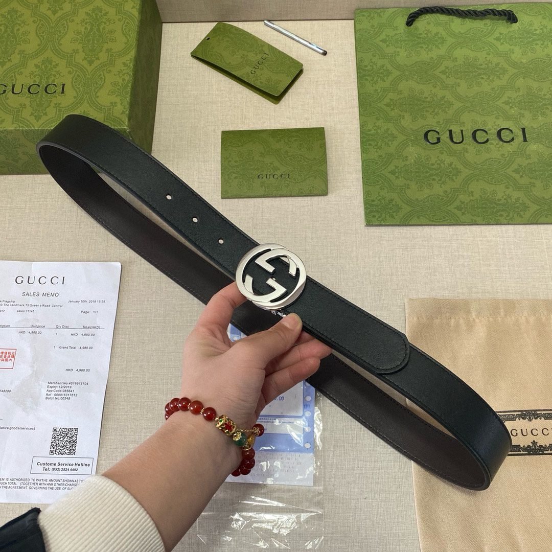 This Gucci classic black belt is the perfect combination of fashion and quality. The belt is made of high-grade black leather, which is soft and comfortable to the touch, and is wear-resistant and durable, giving you the ultimate wearing experience. The silver Double G logo buckle on the belt is unique and highlights the unique charm of the Gucci brand. Whether it is a business occasion or leisure time, this belt can be easily matched with various clothing to show your personality and taste.