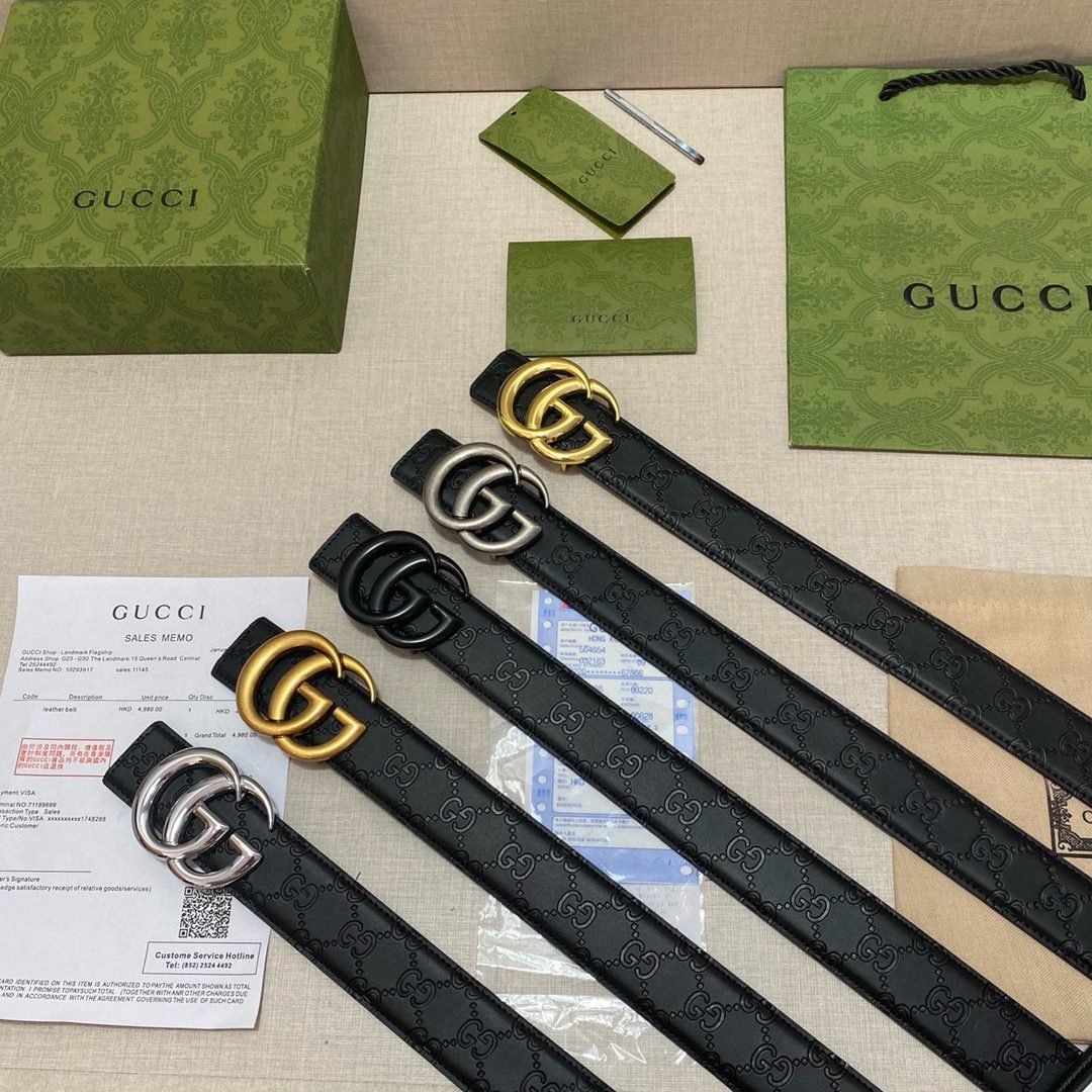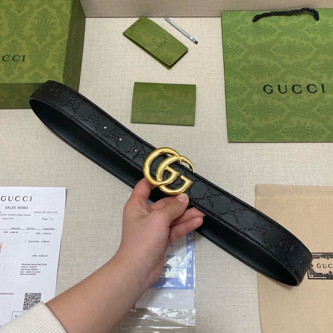 This Gucci elegant black classic double G buckle belt interprets the luxury and classics of the Gucci brand with its exquisite craftsmanship and unique design. The belt is made of high-quality leather material, which is soft to the touch and wear-resistant, and will retain its luster as new after long-term use. Classic black tone with golden double G buckle, simple yet fashionable, showing the wearer’s taste and personality