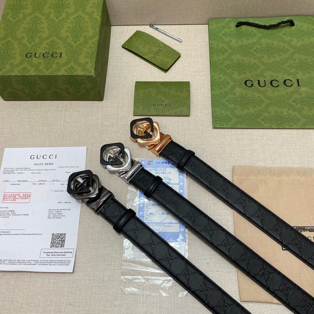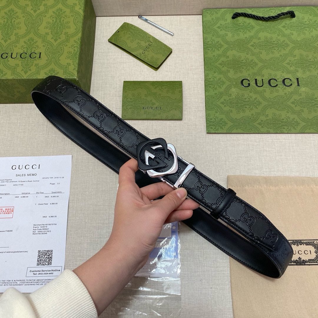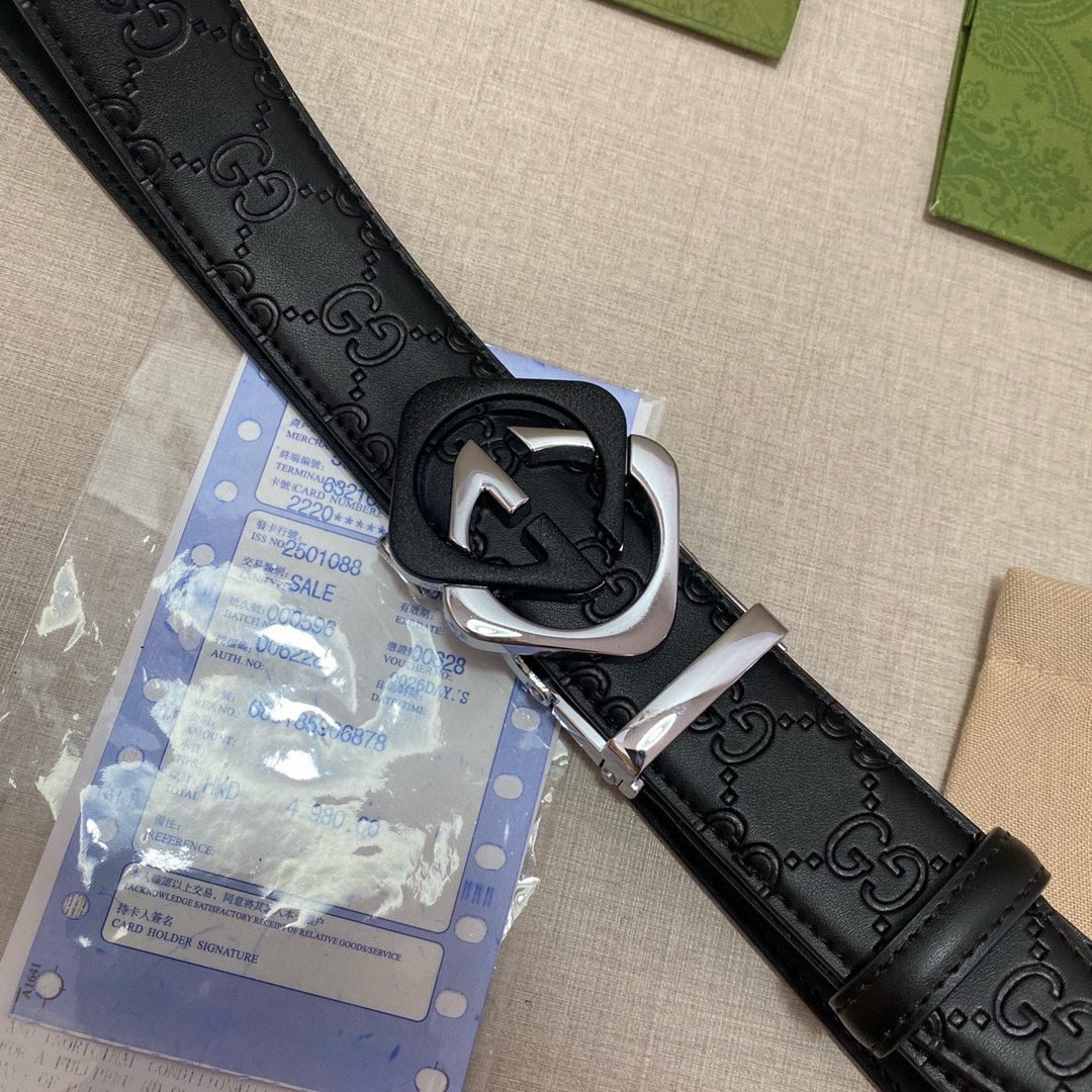 Home Belt GUCCI Belt Gucci classic black G-pattern silver buckle belt with soft feel and exquisite oil edges