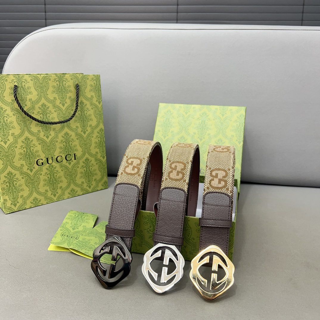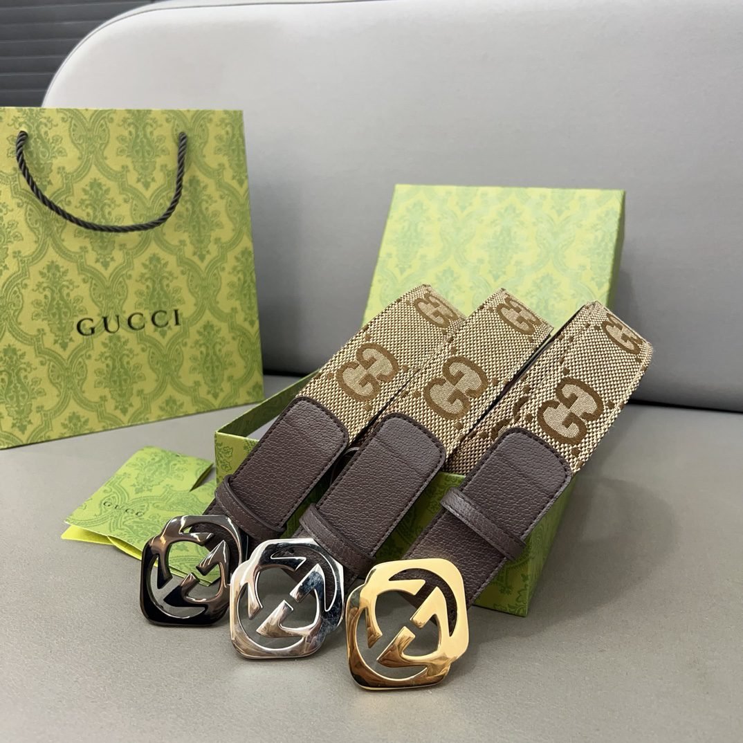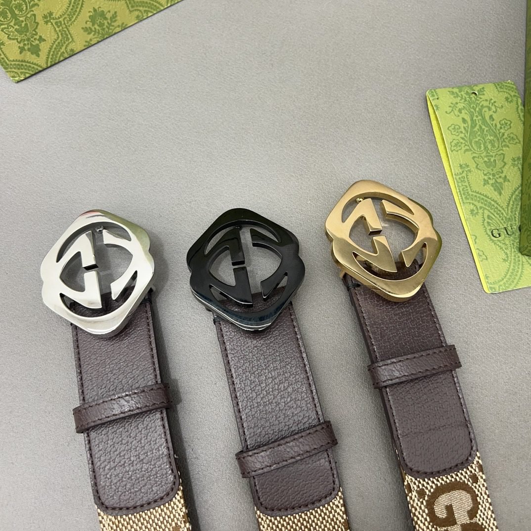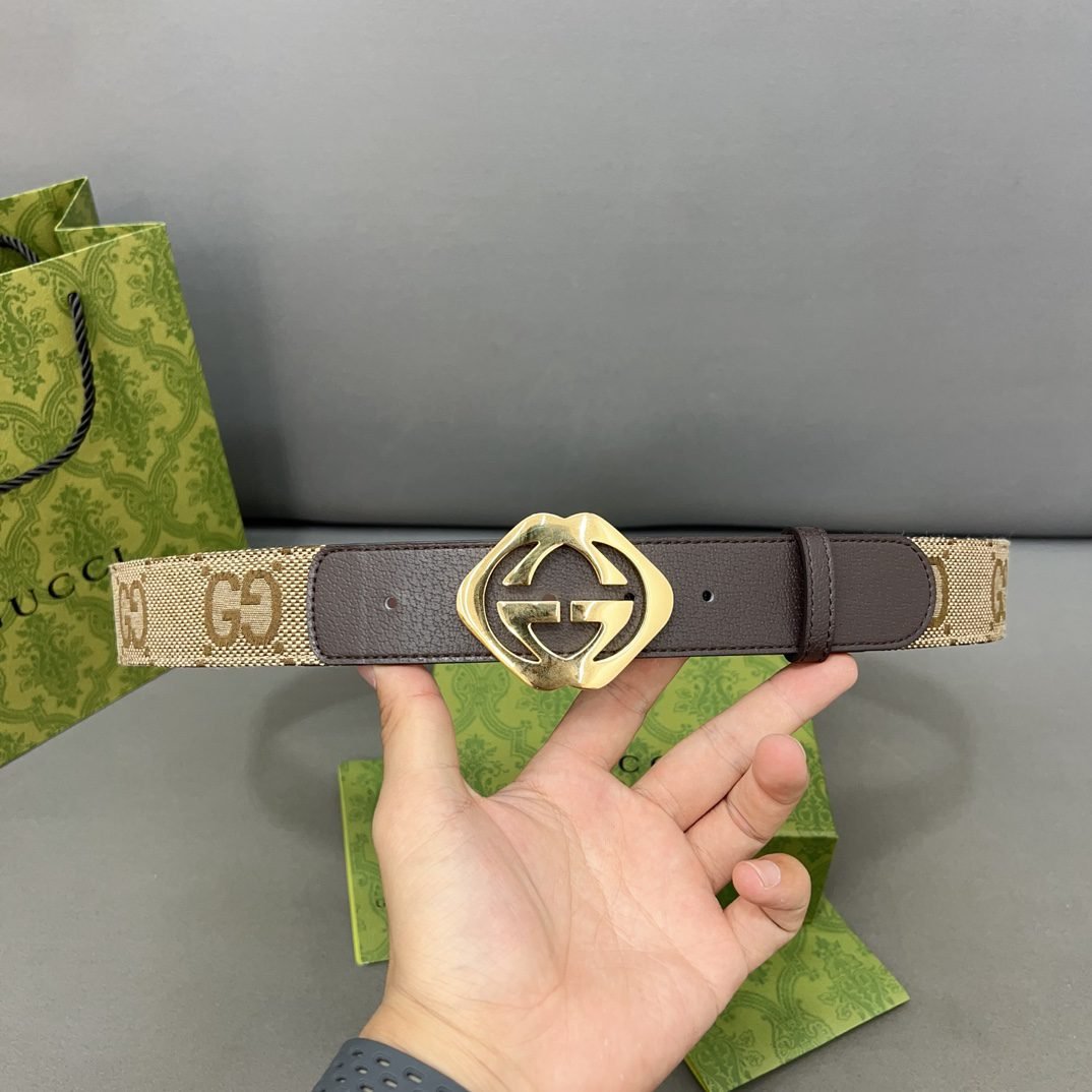 This GS G9 series belt demonstrates the perfect combination of fashion and taste. The belt is made of high-quality brown and beige interwoven design. The belt surface is delicate and smooth, and feels comfortable to the touch, showing a low-key and luxurious style. The double G logo on the belt is embellished with gold, which contrasts sharply with the color of the belt, highlighting the nobility and elegance of the brand.