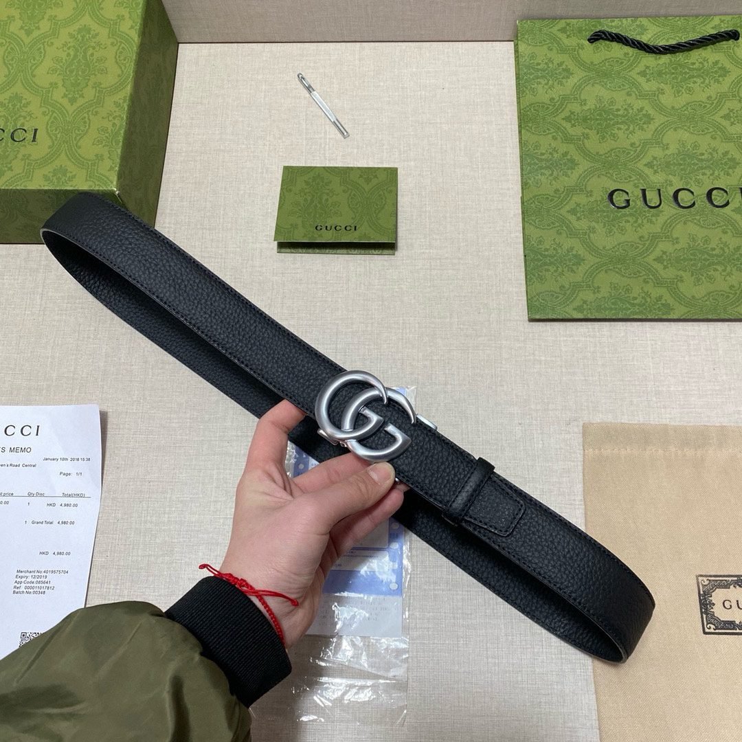 The Gucci double G buckle black belt interprets the perfect fusion of luxury and fashion with its excellent craftsmanship and ultimate quality. Selected top-grade genuine leather material, soft and elastic to the touch, bringing you the ultimate comfort experience. Made of high-quality metal, it has a shiny luster and highlights the unique charm of the Gucci brand.