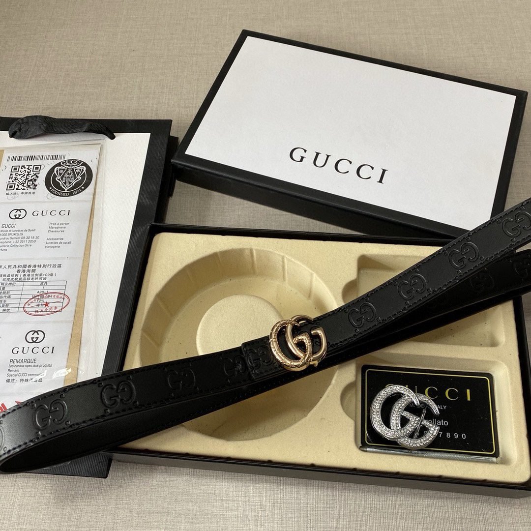 GUCCI, a luxury brand from Italy, has become a leader in the global fashion industry with its unique creativity, exquisite craftsmanship and deep understanding of fashion. This classic double G black belt gift box set is an outstanding representative of the GUCCI brand.The double G logo on the belt is not only a symbol of the GUCCI brand, but also a reflection of fashion and taste. The black belt and the golden double G logo complement each other, simple yet elegant, showing the wearer’s unique taste and personality.