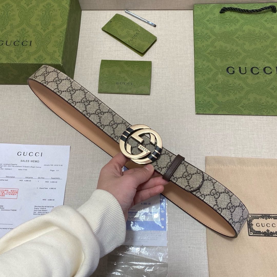 Home Belt GUCCI Belt Gucci classic “GG” pattern brown and beige leather belt, soft to the touch, exquisite oil edges, extremely durable