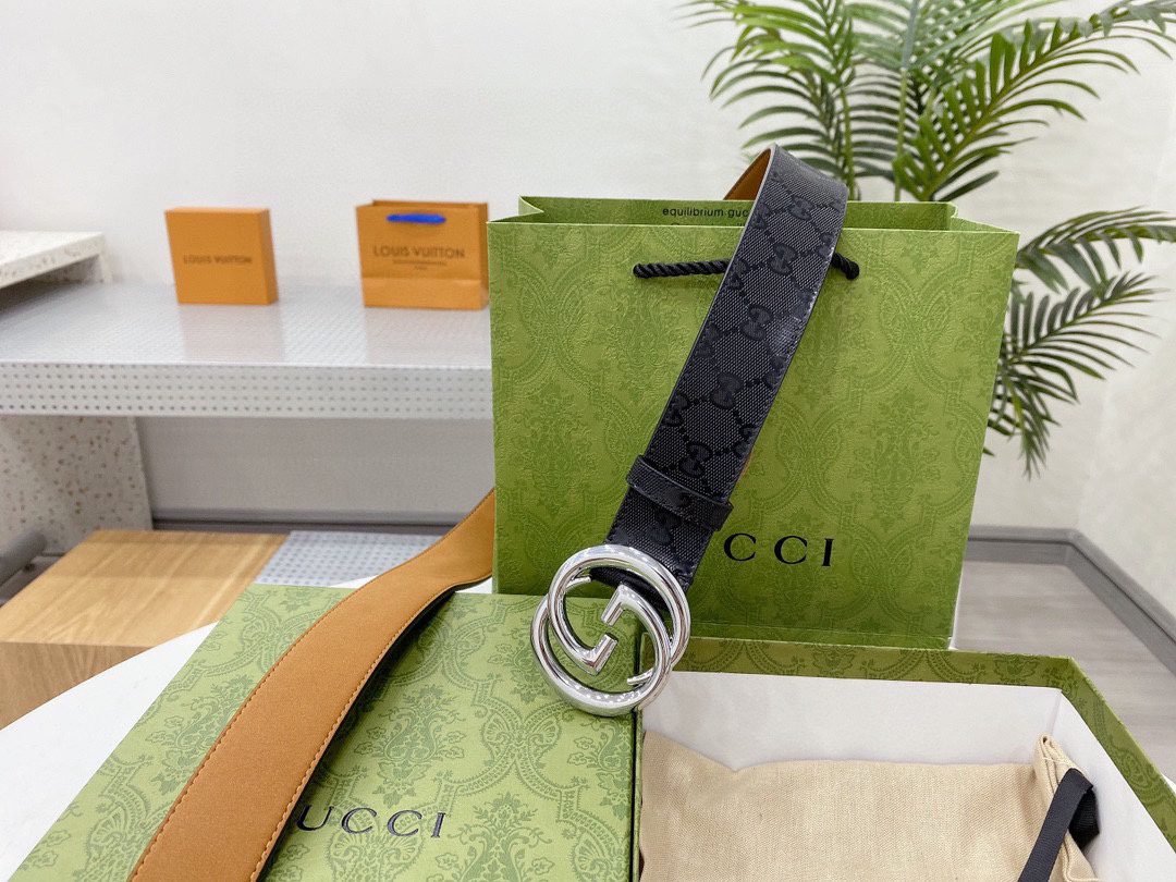 This Gucci classic two-tone interwoven belt is not only a fashionable accessory, but also a symbol of men’s taste and identity. It is suitable for a variety of formal and casual occasions, whether it is paired with a suit to attend a business meeting or paired with jeans for a casual trip, it can easily show the wearer’s personality and charm.