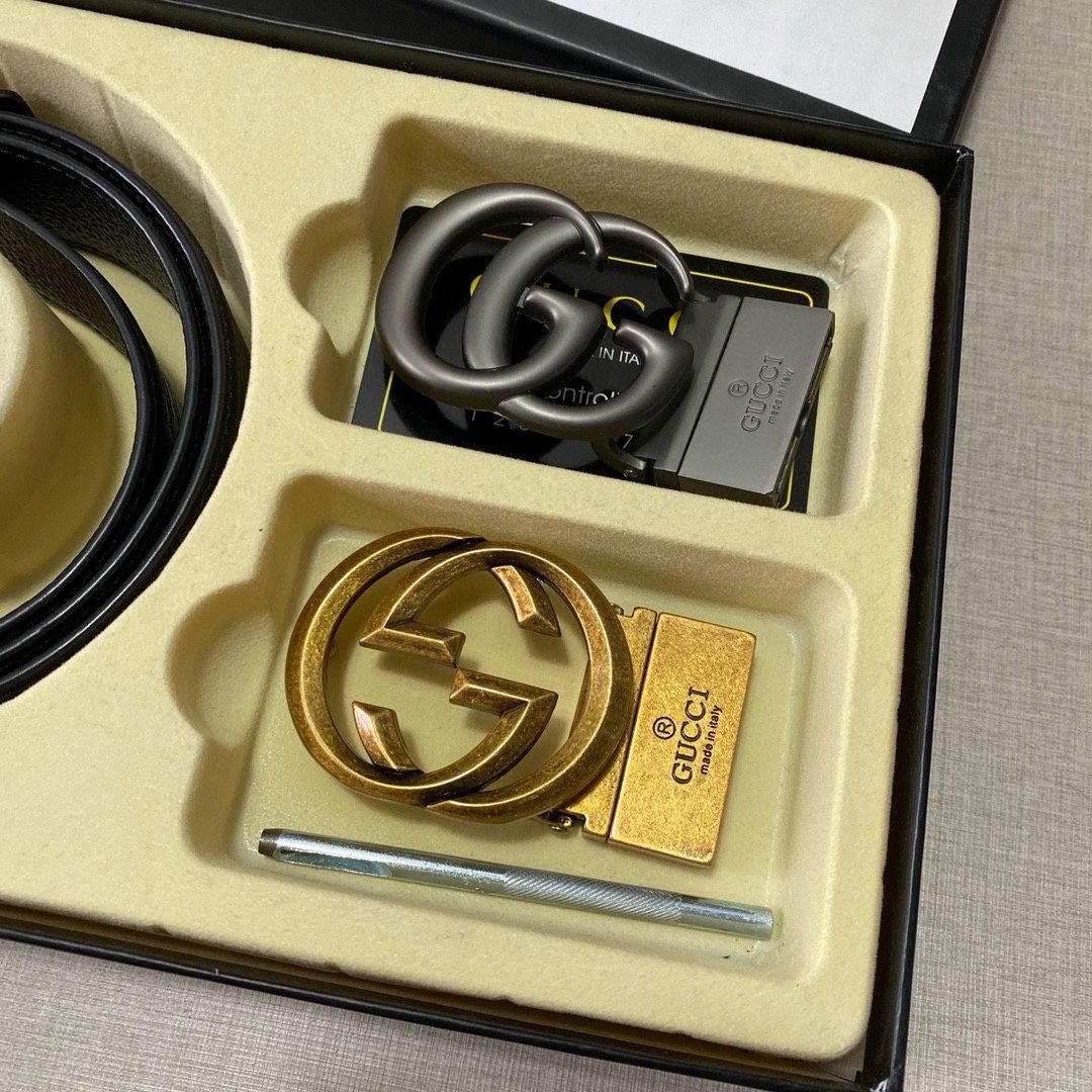 Home Belt GUCCI Belt Gucci double buckle gift box set, simple and elegant, low-key and luxurious