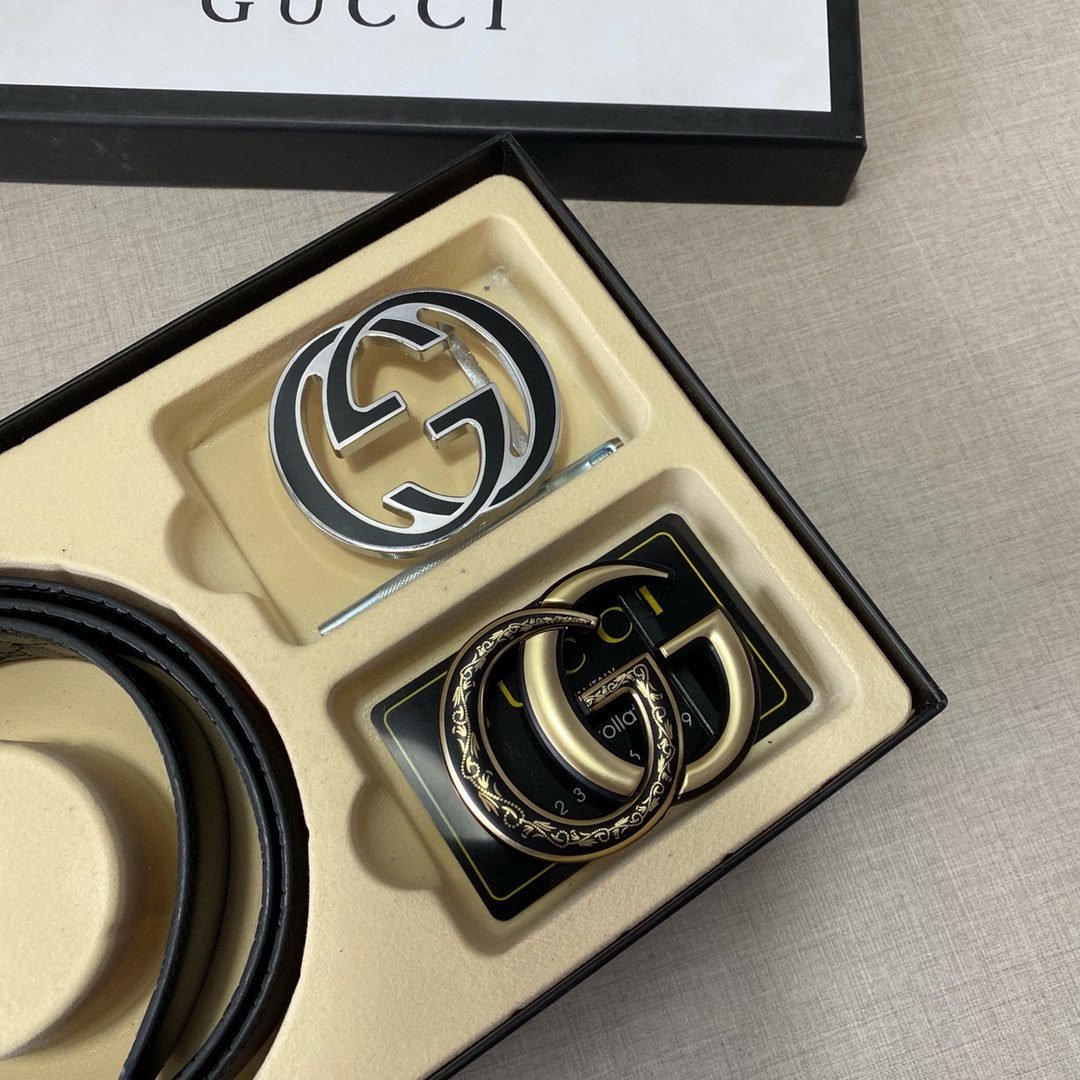 The Gucci double-buckle gift box set is designed with the unique double G logo as the core, showing nobility and taste. The belt is made of top-grade genuine leather, which is soft and delicate, wear-resistant and durable, and at the same time elegant and fashionable. In addition, the gift box is equipped with two different buckles, which are made with exquisite craftsmanship and have a dazzling luster, showing extraordinary status.