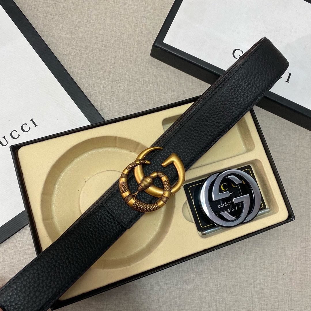Home Belt GUCCI Belt Gucci double buckle gift box set, simple and elegant, with delicate texture