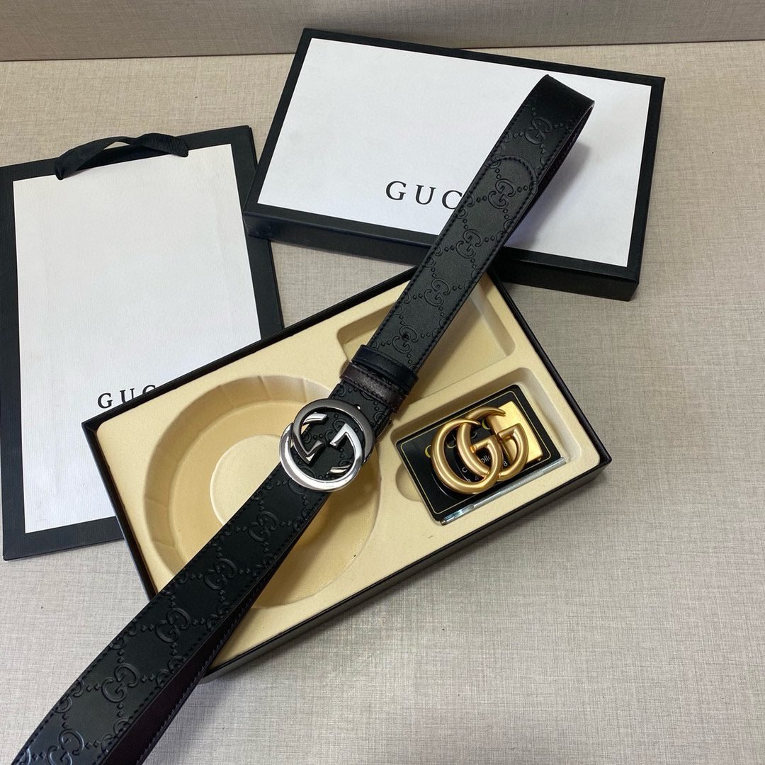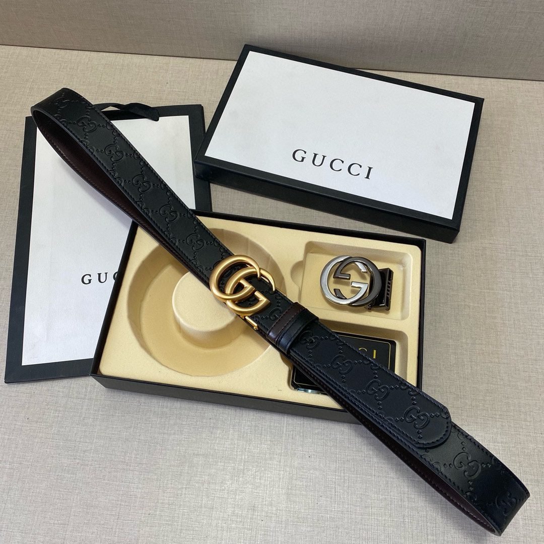 The GUCCI double buckle gift box set, with its unique design concept and excellent quality, highlights the brand’s unparalleled charm. This belt is made of top-grade black leather, which is soft and delicate to the touch, with extremely high gloss, showing unparalleled texture. The double G buckle design is exquisite and unique, made of metal, which forms a sharp contrast with the black belt, making it more fashionable. In addition, the gift box is equipped with two different buckles to meet your dressing needs for different occasions. The overall design is exquisite and sophisticated, showing the wearer’s dignity and taste.