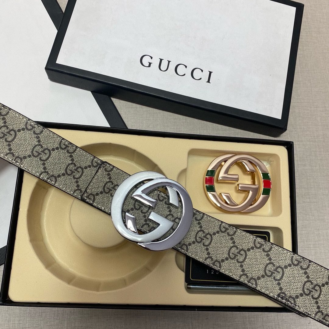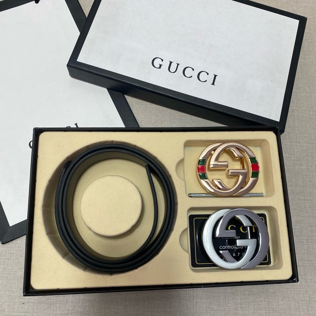 The Gucci double-button gift box set, with its unique black tone and exquisite craftsmanship belt, shows unparalleled elegance and nobility. Made of top-grade leather material, it is soft and elastic to the touch, and is wear-resistant and durable to ensure that it remains as shiny as new after long-term use. The gift box is equipped with two different buckles, centered on the unique double G logo, highlighting the unique charm of the Gucci brand. The entire belt design is simple yet luxurious, perfectly interpreting Gucci’s fashion concept.