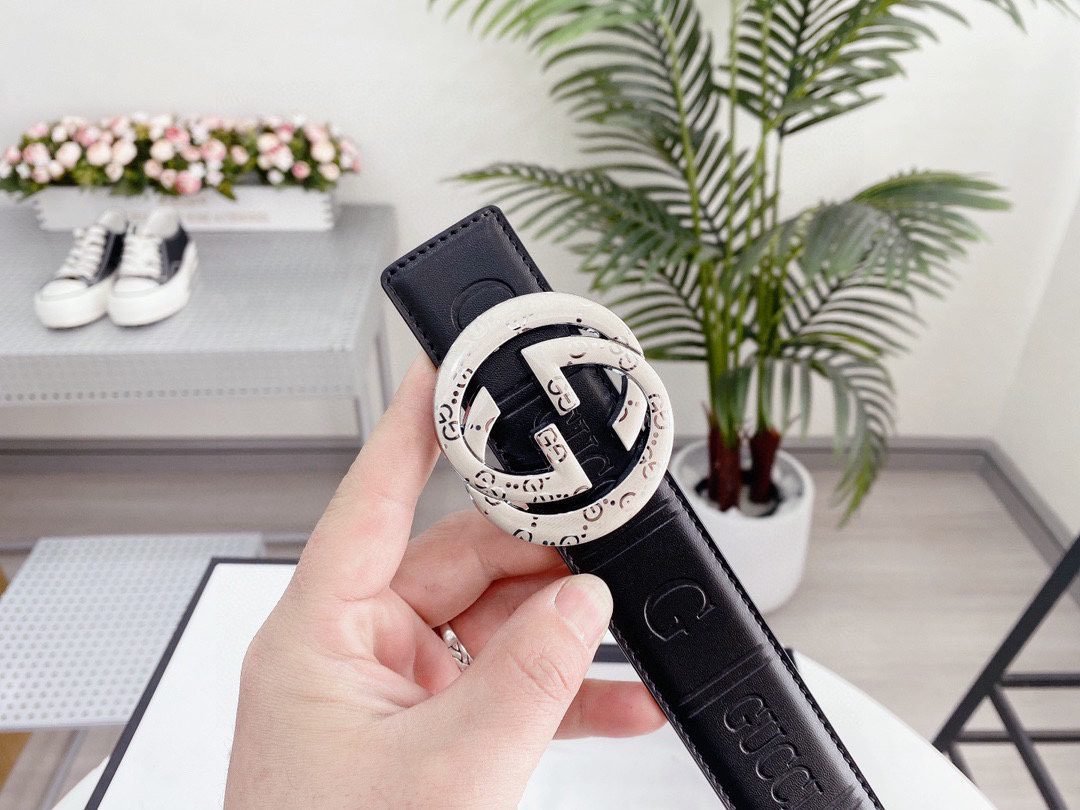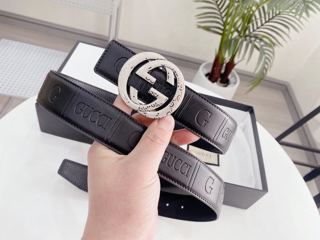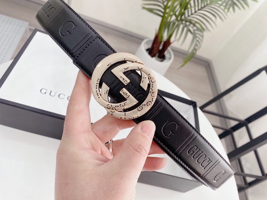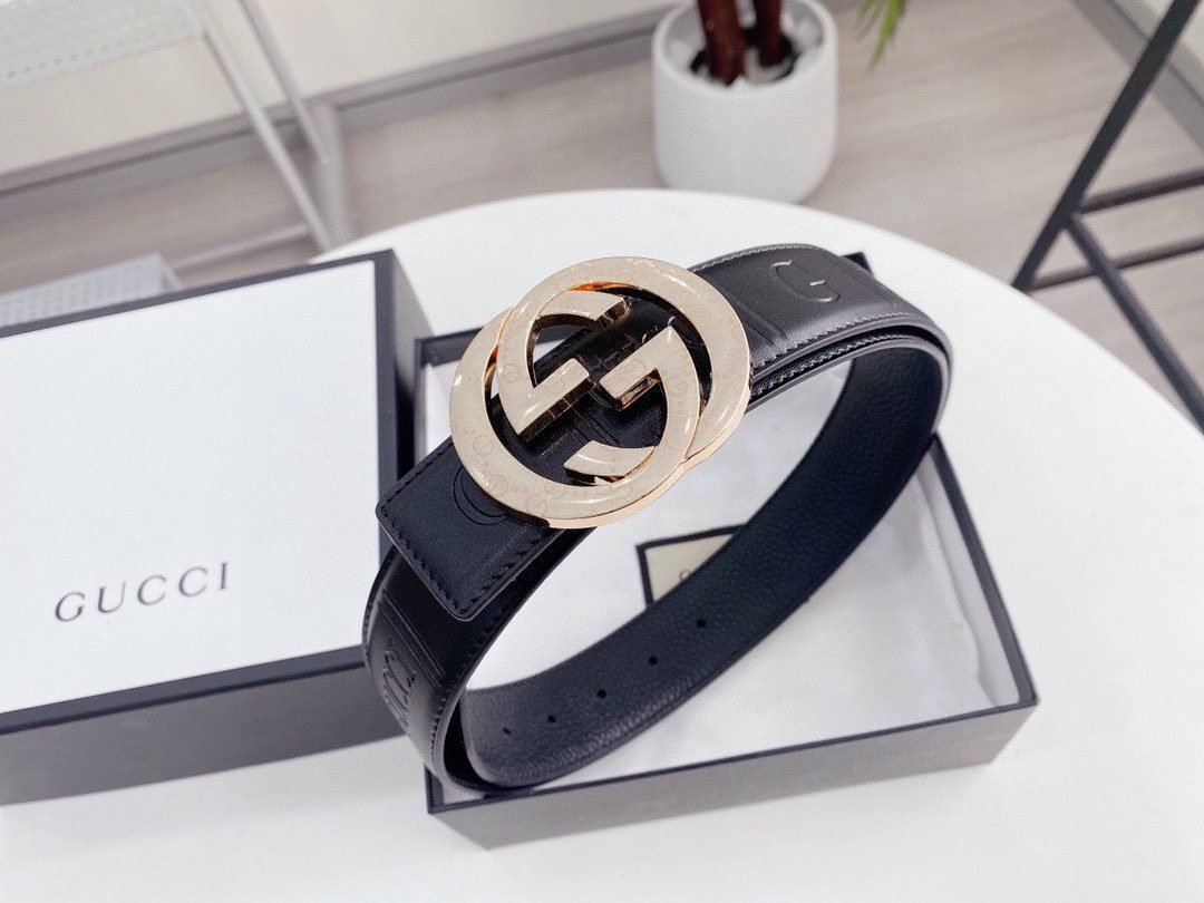 Gucci double G buckle black texture fashion belt, a perfect combination of classic and modern. Selected high-quality black leather, soft and delicate to the touch, natural and lasting luster. The unique double G buckle design is made of high-quality metal material, with dazzling luster, showing extraordinary quality. Every detail has been carefully polished to present an unparalleled sense of refinement.