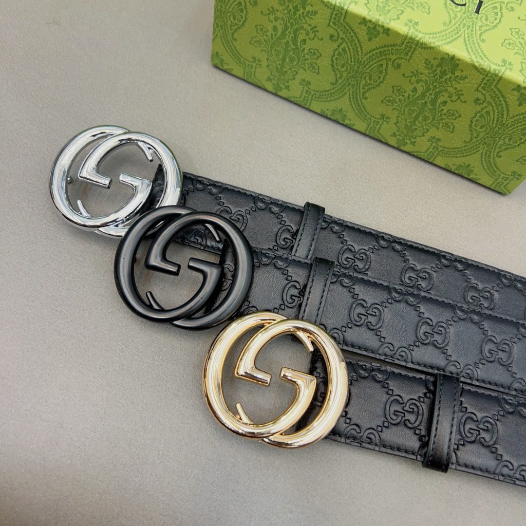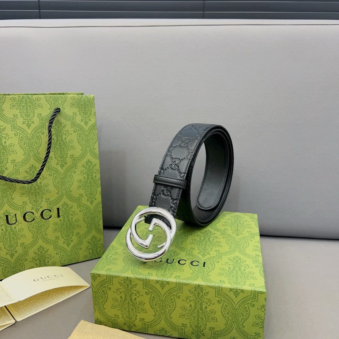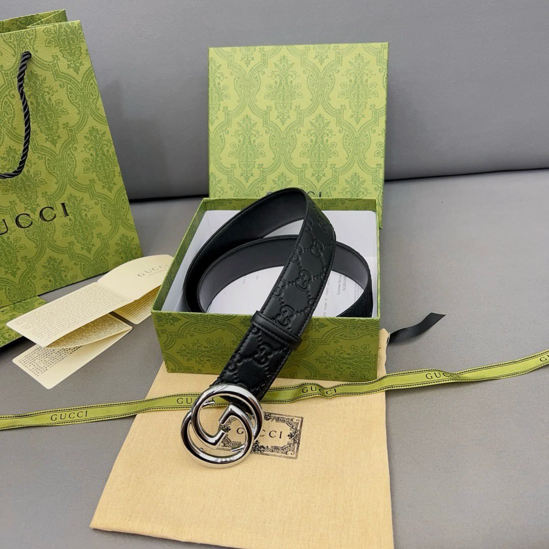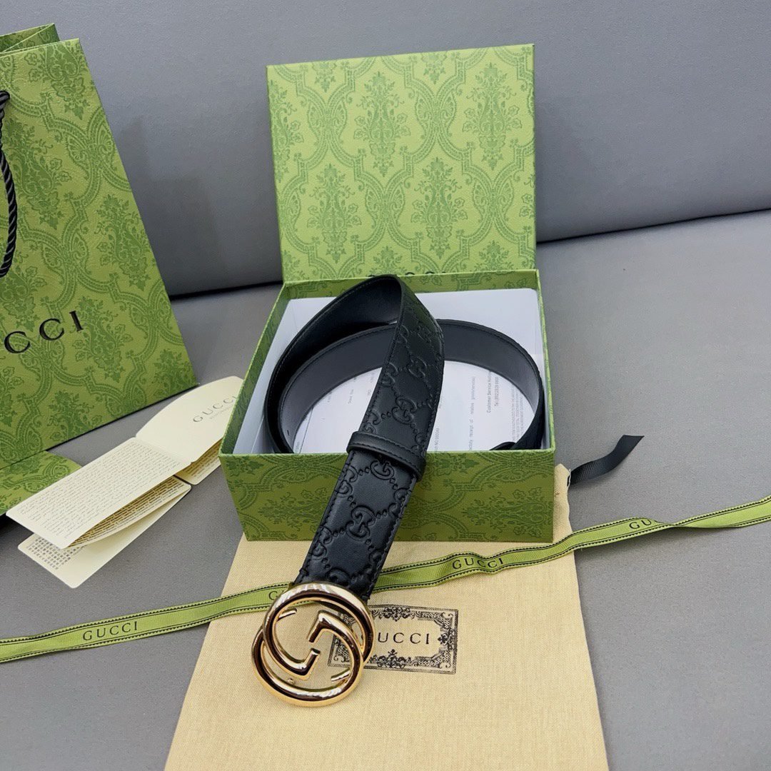 This GUCCI double G buckle black textured belt interprets the brand’s luxury and sophistication with its unique charm. The belt is made of high-quality leather, which is soft and elastic to the touch and durable. The black-toned design is classic and versatile, and can be easily worn in both business and leisure occasions. The metal buckle is embedded in the center of the belt, and the brand’s iconic double G pattern is created with exquisite craftsmanship, highlighting the wearer’s distinguished status and unique taste.