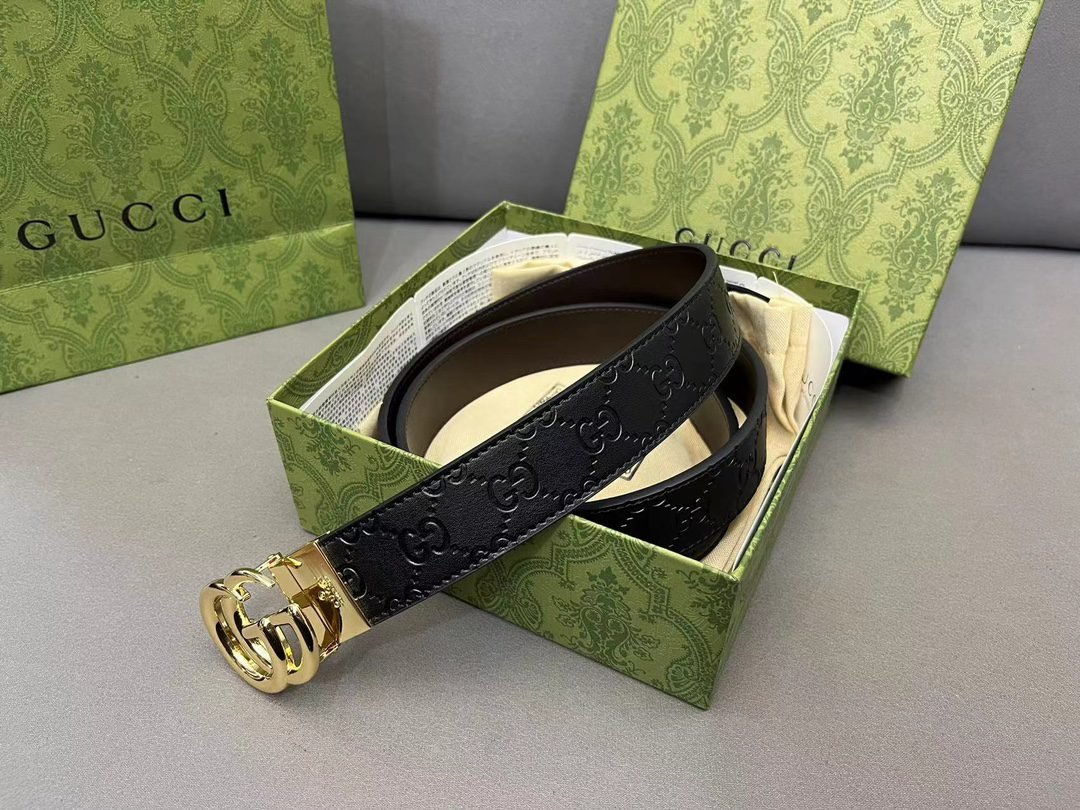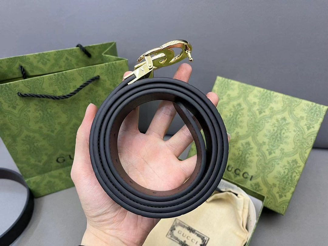 The Gucci double G buckle black textured belt highlights its nobility and extraordinaryness with its unique color matching. The belt is made of selected leather material, which has a delicate touch, wear resistance and durability. The buckle is made of high-quality metal, with long-lasting luster, durability, and highlights the brand’s charm. The overall design of the belt is simple yet elegant, perfectly interpreting the fusion of fashion and classics.