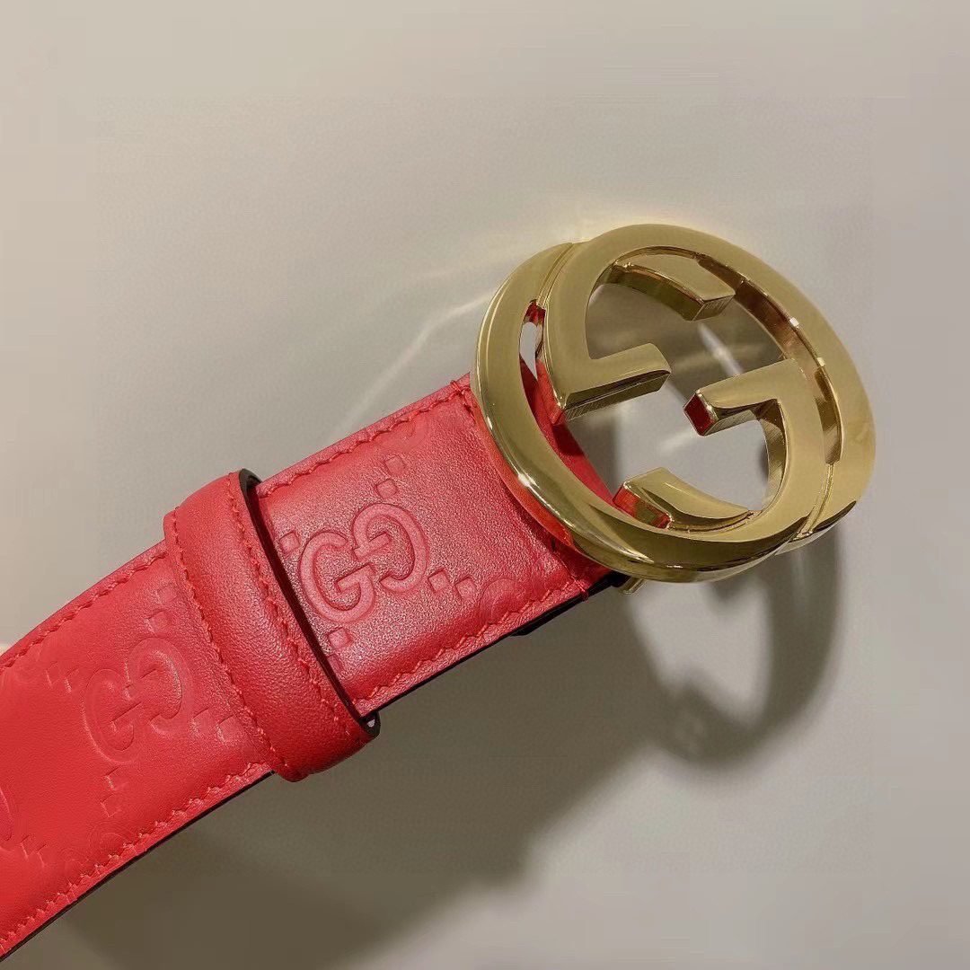 This Gucci double G buckle red textured belt has become a fashion must-have with its unique charm. The bright red belt is as warm and unrestrained as a flame, full of vitality and confidence. The exquisite metal G buckle is made of high-quality craftsmanship and shines brightly, highlighting the nobility and luxury of the brand. The belt material is soft and comfortable, not only wear-resistant and durable, but also brings you the ultimate wearing experience.