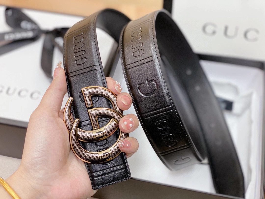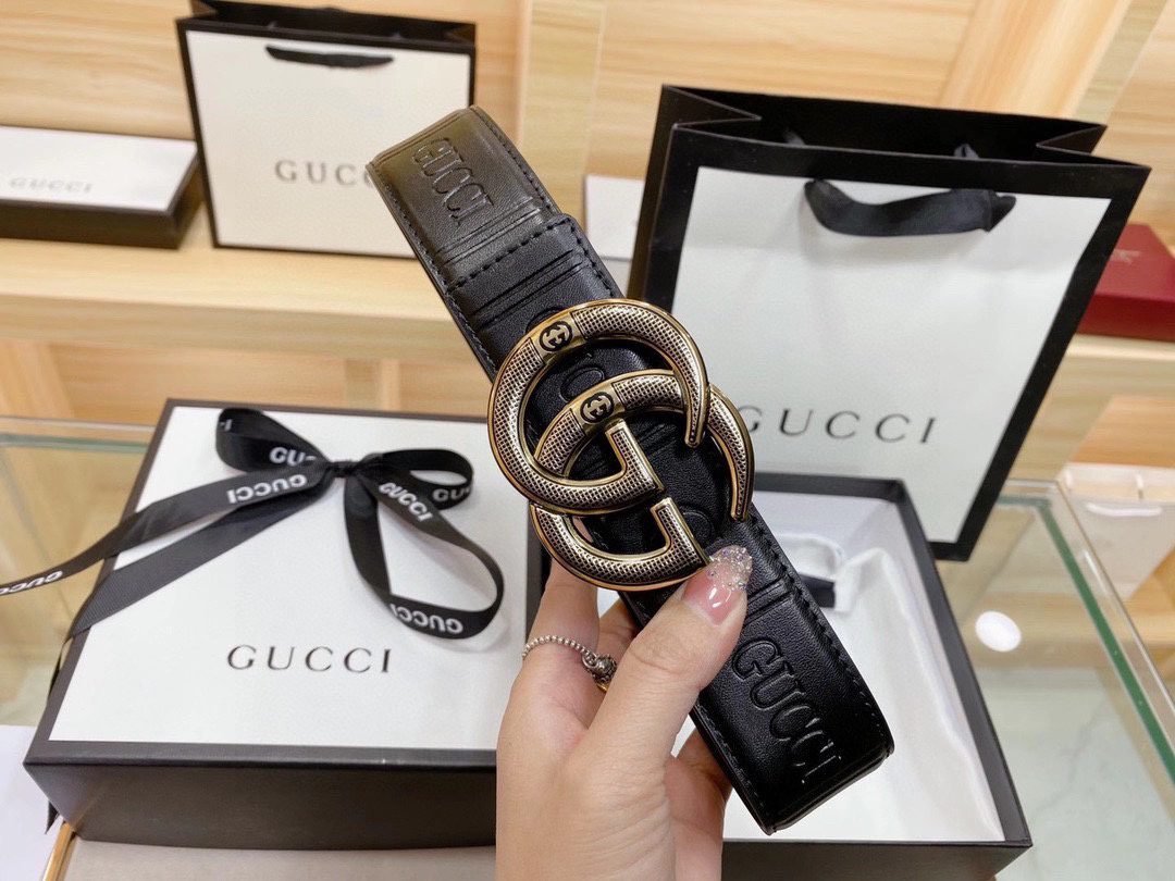 This Gucci double-G textured buckle black textured belt demonstrates endless elegance and luxury with its excellent quality and unique design. It is made of top-quality black leather. The leather is delicate, soft to the touch, full of color and long-lasting, highlighting the brand. The ultimate pursuit of quality.