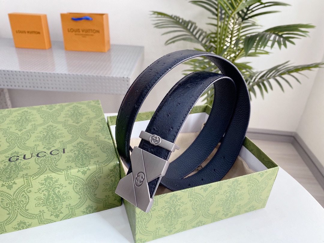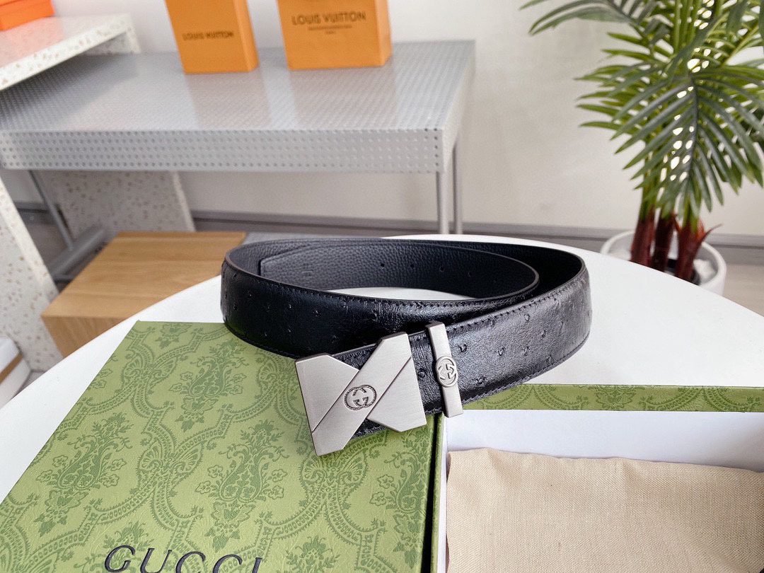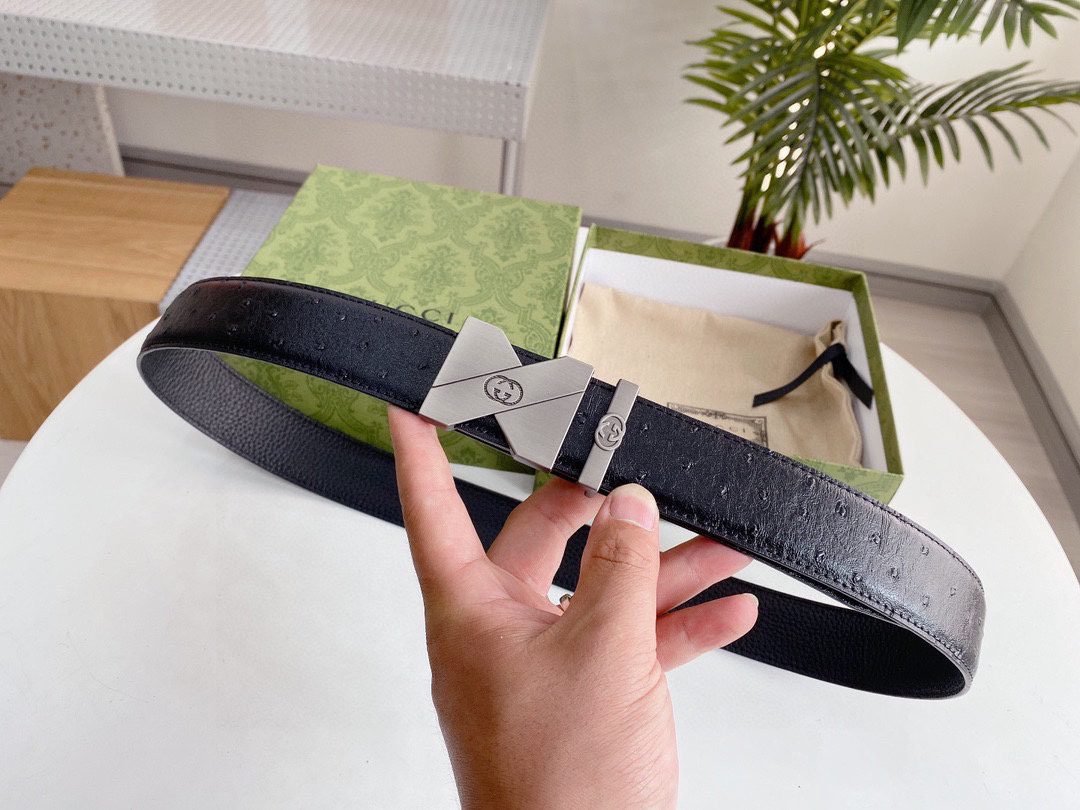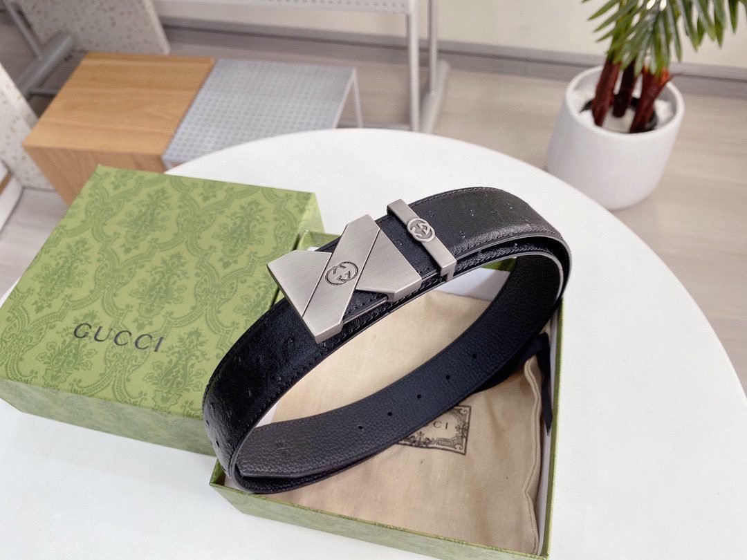 This elegant black leather belt from GUCCI shows unparalleled fashion charm with its elegant design and excellent quality. The belt is made of top-grade black leather, which is soft, elastic and durable. The buckle is designed in silver and inlaid with the eye-catching “GUCCI” brand logo, highlighting the high-end and noble nature of the brand. The unique craftsmanship and detail processing make this belt reveal extraordinary taste in simplicity.
