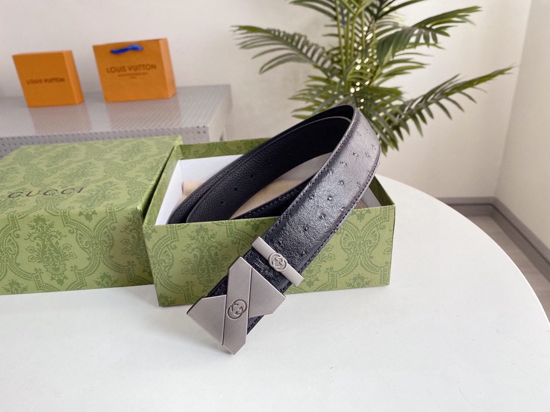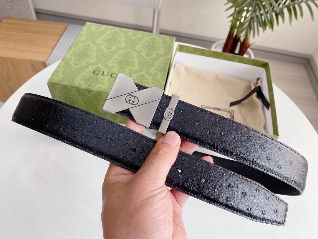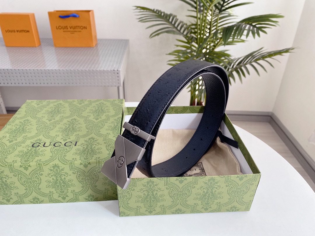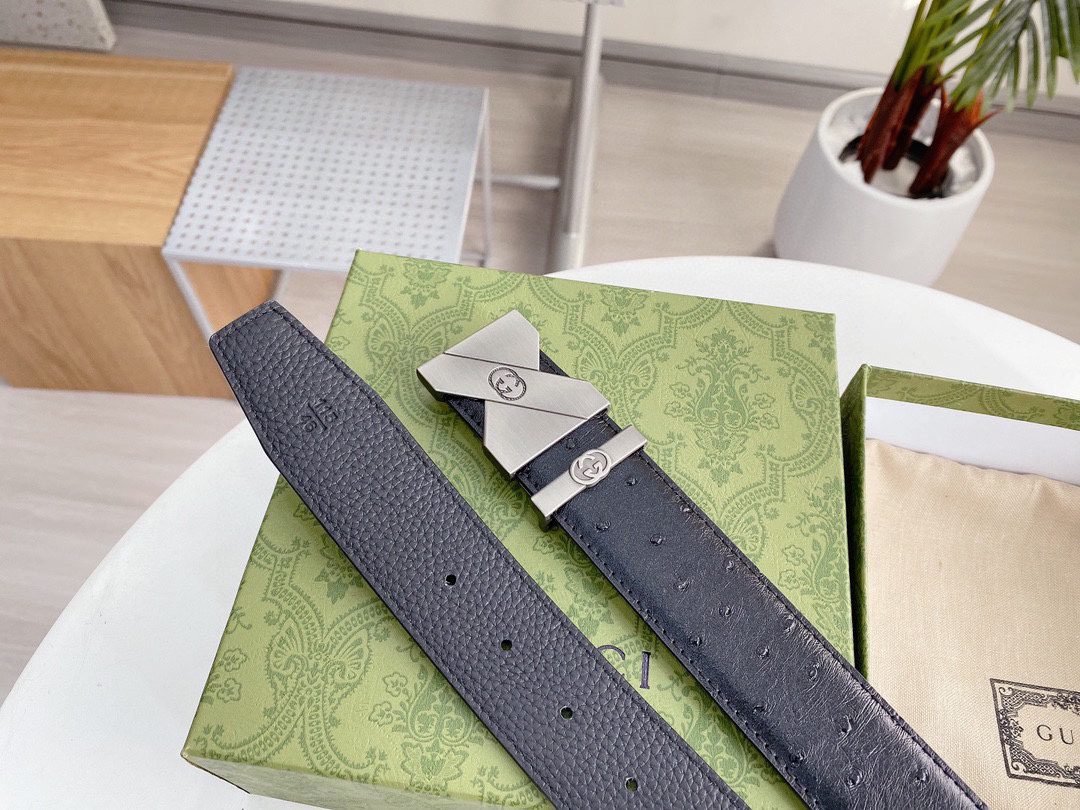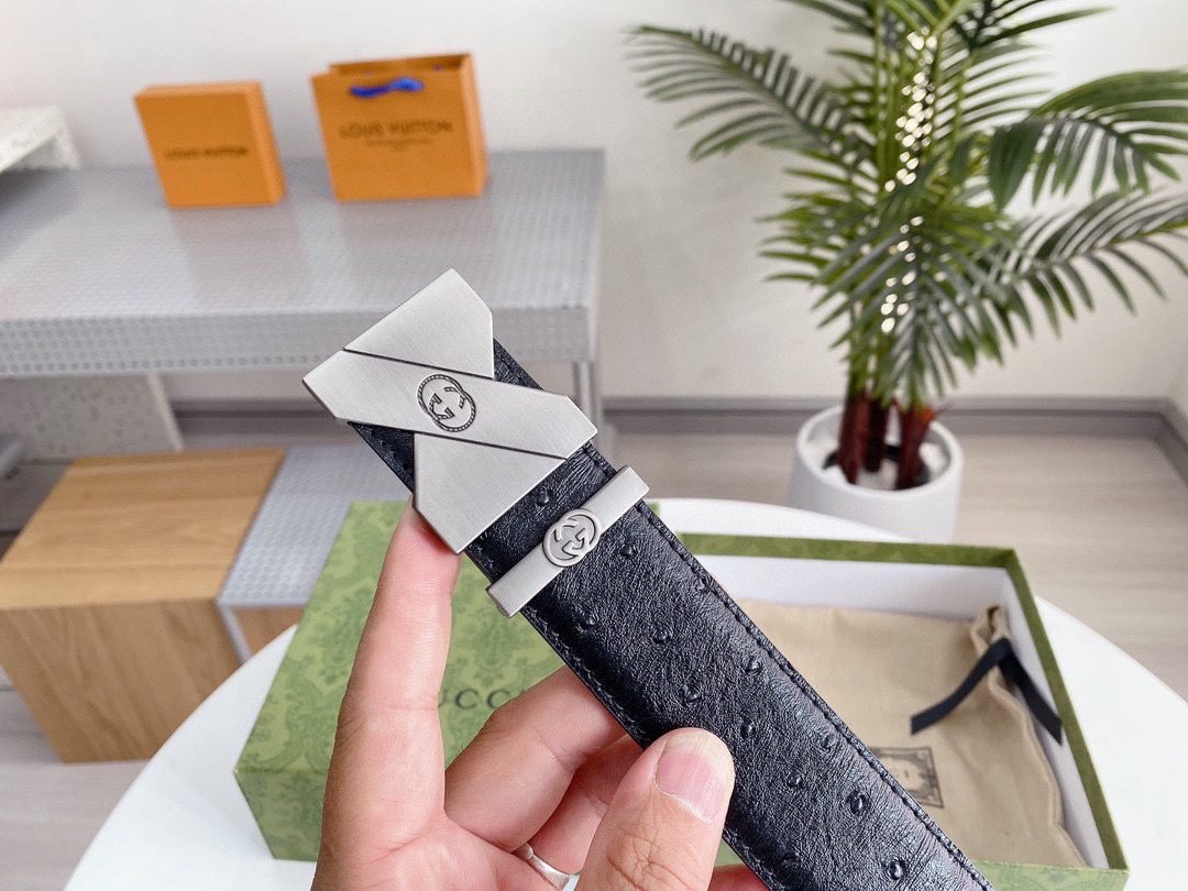 This elegant black leather belt from GUCCI shows unparalleled fashion charm with its elegant design and excellent quality. The belt is made of top-grade black leather, which is soft, elastic and durable. The buckle is designed in silver and inlaid with the eye-catching “GUCCI” brand logo, highlighting the high-end and noble nature of the brand. The unique craftsmanship and detail processing make this belt reveal extraordinary taste in simplicity.
