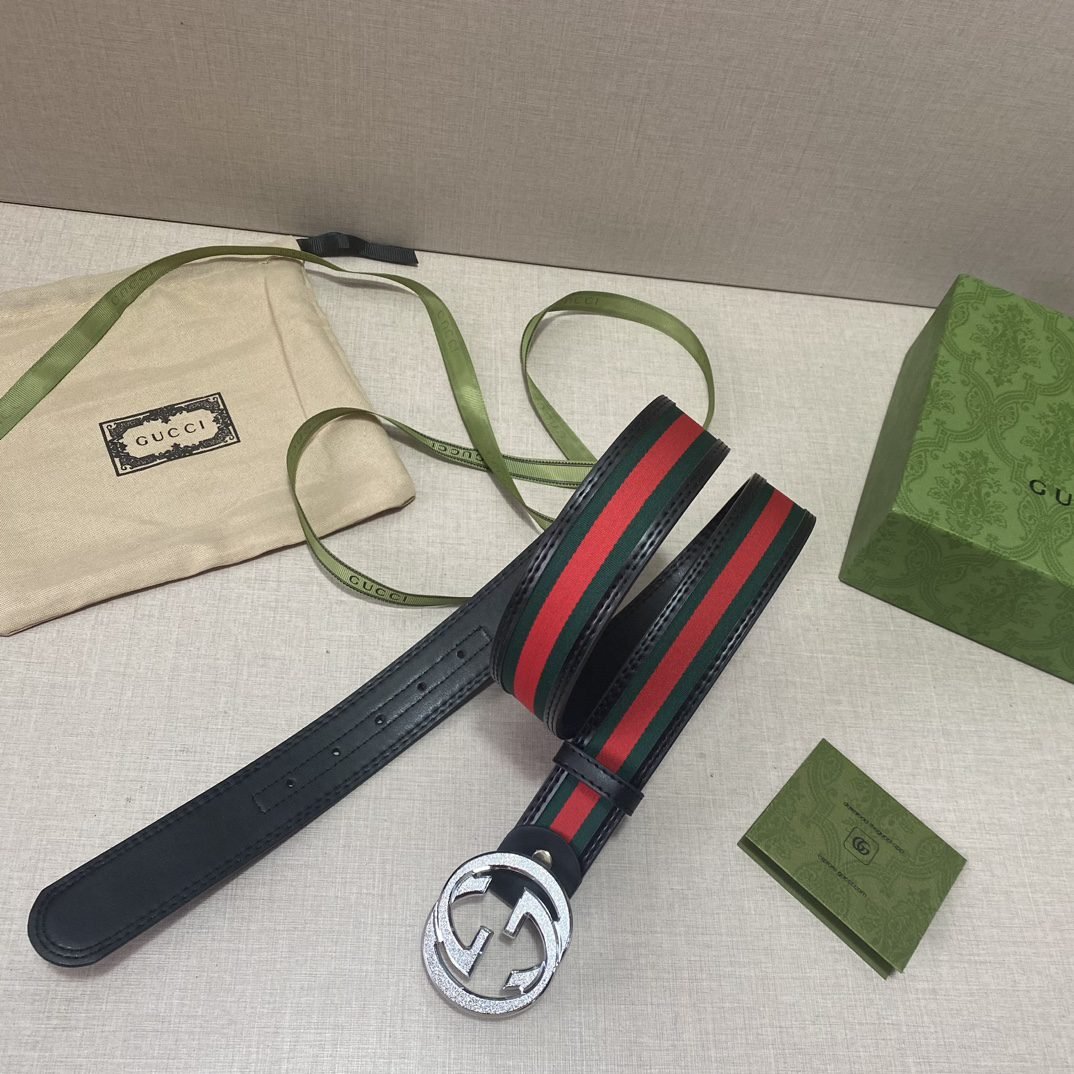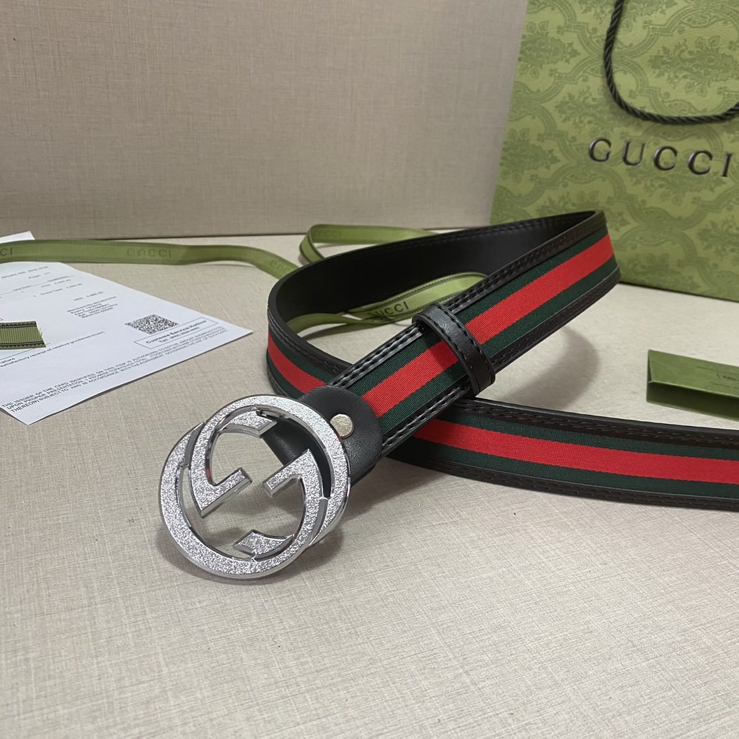This Gucci fashionable three-color striped silver buckle belt has become the focus of the fashion world with its unique three-color striped design. The classic combination of red, green and black not only highlights the brand’s vitality and passion, but also reveals a low-key luxury. The belt is made of high-quality leather, which is soft and comfortable to the touch, wear-resistant and durable.