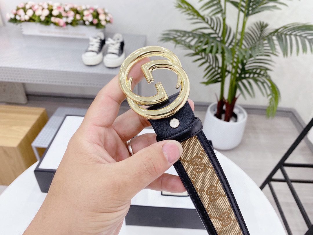 Gucci gold buckle brown canvas classic G logo belt simple atmosphere full of modern sense