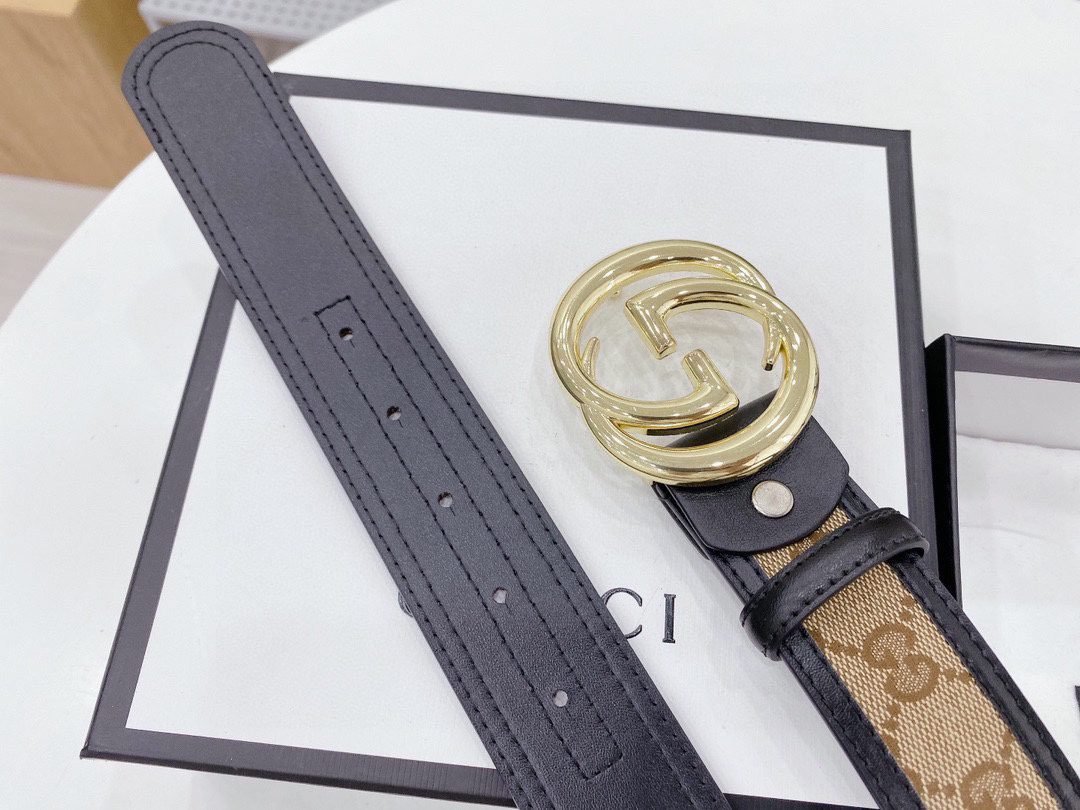 Home Belt GUCCI Belt Gucci gold buckle brown canvas classic G logo belt simple atmosphere full of modern sense