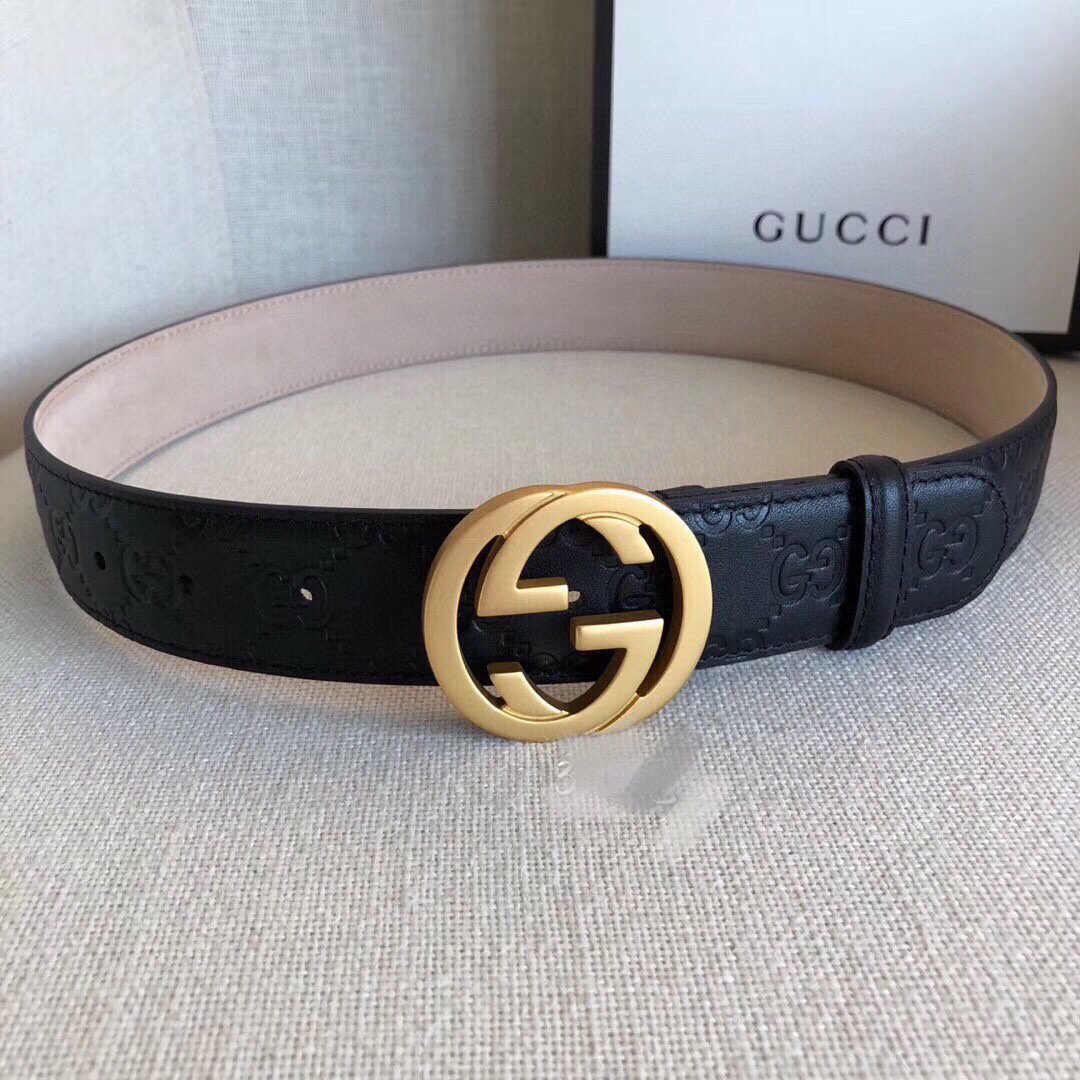 Gucci’s black leather belt with golden double G buckle is made of top-grade cowhide. The leather is soft, delicate and comfortable to the touch. The surface of the belt has been carefully polished to give it a unique luster, highlighting the brand’s noble quality. The belt buckle is inlaid with the iconic GG pattern, presented in gold, which looks fashionable yet classic.
