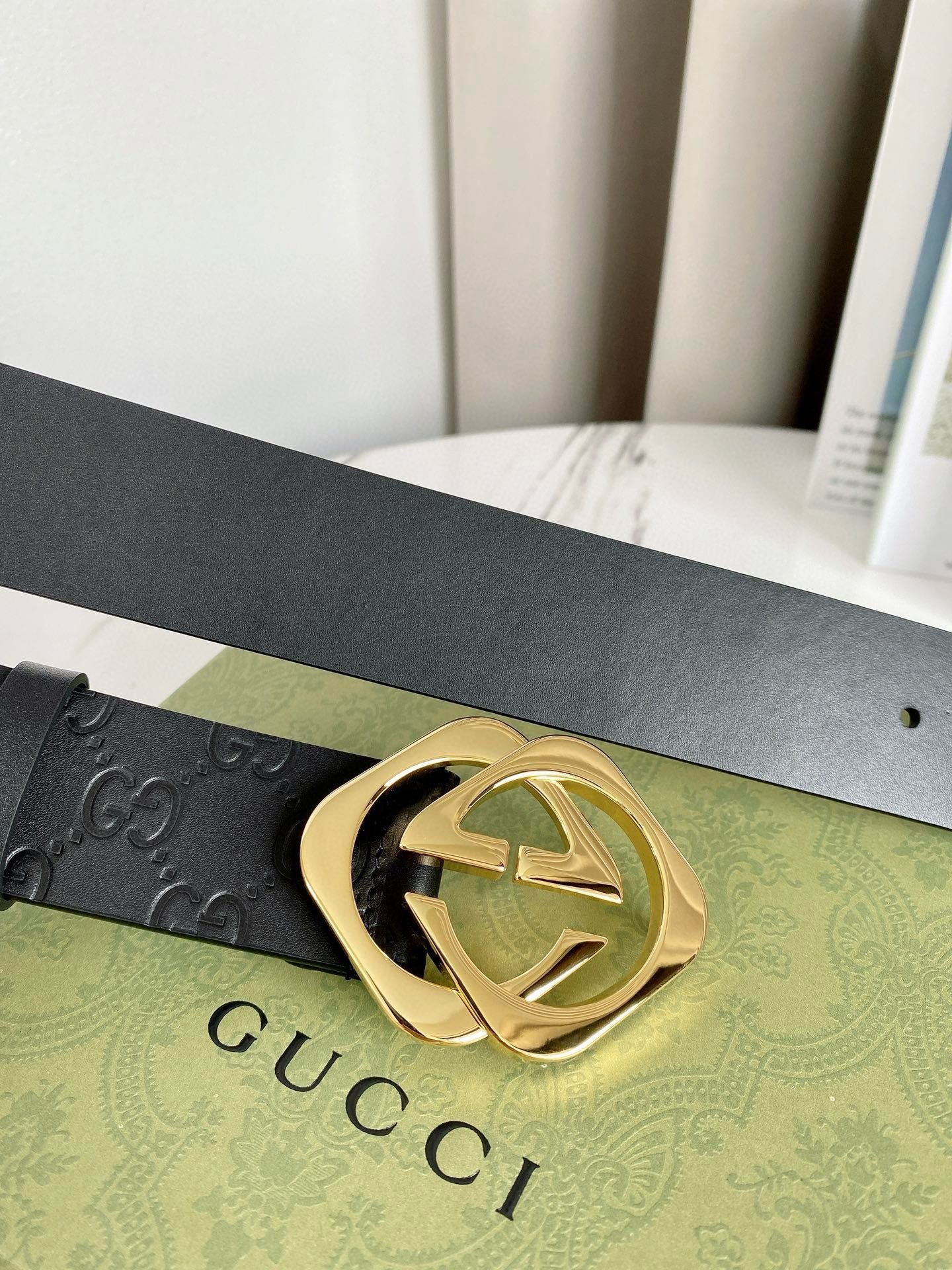 This Gucci double G logo fashionable men’s belt, with its unique double G logo buckle design, highlights the brand’s unparalleled charm. The belt is made of high-quality leather, which is soft and delicate to the touch, while also having excellent durability. The golden double G logo on the buckle adopts a fine polishing process, which is shining and highlights the wearer’s unique taste and identity.