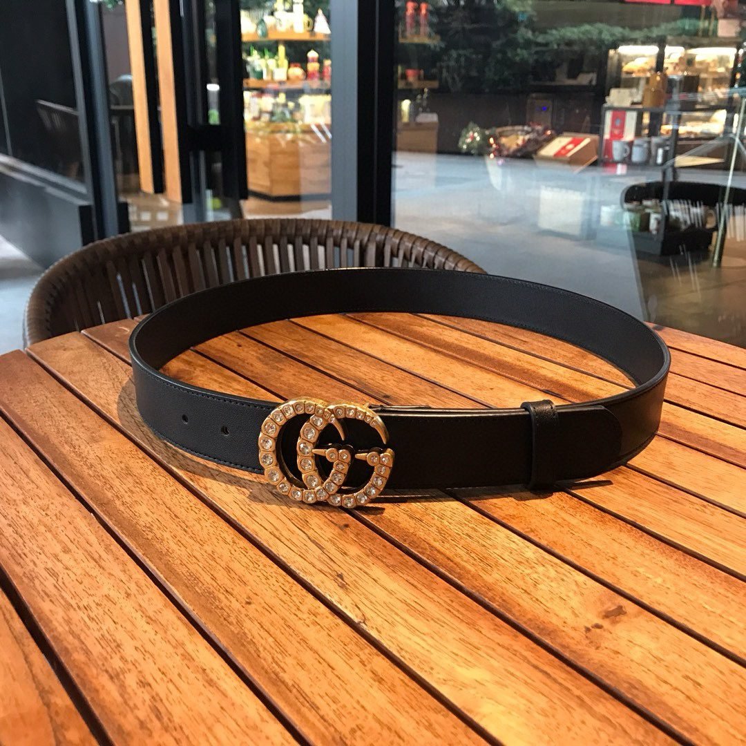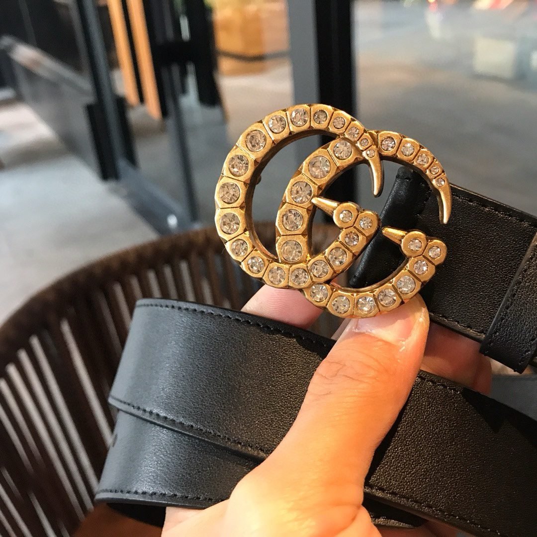 Home Belt GUCCI Belt Gucci gold G buckle black fashion belt, simple and elegant, fashionable and high-end