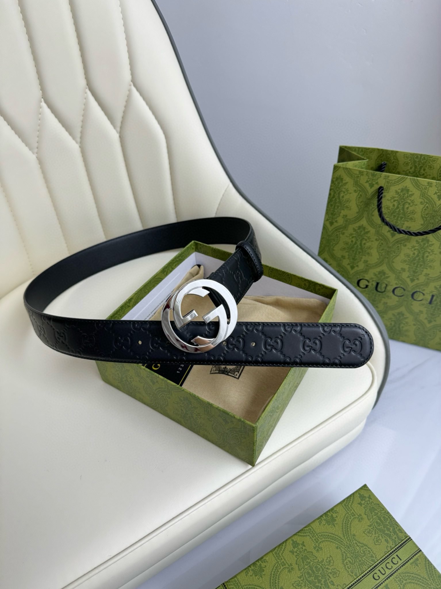 Home Belt GUCCI Belt Gucci luxury silver G buckle black belt, simple and elegant, low-key and luxurious