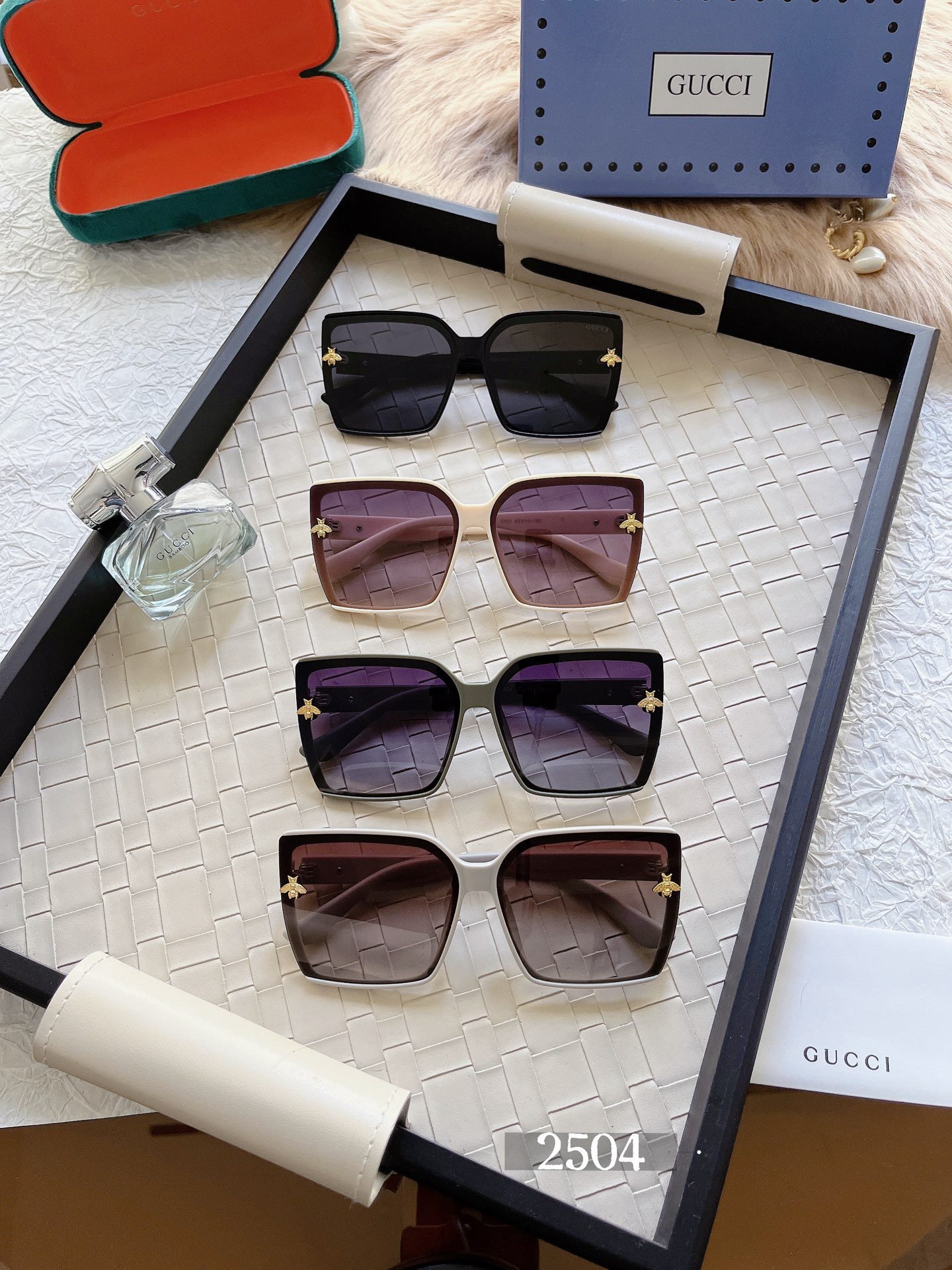 Elevate your fashion game with Gucci Model 2504 sunglasses. Featuring oversized square frames adorned with exquisite bee details on the temples, these sunglasses come in a range of attractive color combinations—classic black, beige with purple lenses, gray with purple lenses, and white with brown lenses. Not only do they provide excellent sun protection, but they also exude luxury and charm. Whether you’re strolling through the city or heading to a chic event, these Gucci sunglasses seamlessly blend style and functionality, making them a must – have accessory for any fashion – forward individual.