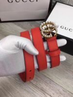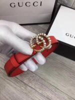 Whether in high-end business places, luxurious banquet halls, or leisurely cafes and streets, this Gucci pearl-inlaid gold buckle red belt can become a fashion highlight for the wearer. It can not only highlight the wearer’s identity and taste, but also add a touch of bright color to the overall look.