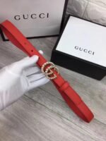 This Gucci red belt with pearl inlaid gold buckle combines the elegance and luxury of the brand, and every detail shows exquisite craftsmanship and excellent quality. The belt uses bright red, which symbolizes passion and vitality, and also highlights the unique personality of the wearer. The gold buckle is inlaid with exquisite pearls and gemstones, which is dazzling and shows noble temperament. The whole belt is simple yet elegant. Whether worn alone or paired with clothes, it can easily show the wearer’s fashion taste and high-end status.