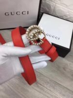 Home Belt GUCCI Belt Gucci Pearl Encrusted Gold Buckle Red Belt Soft to the Touch Extremely Durable Exquisite Pearl Encrusted