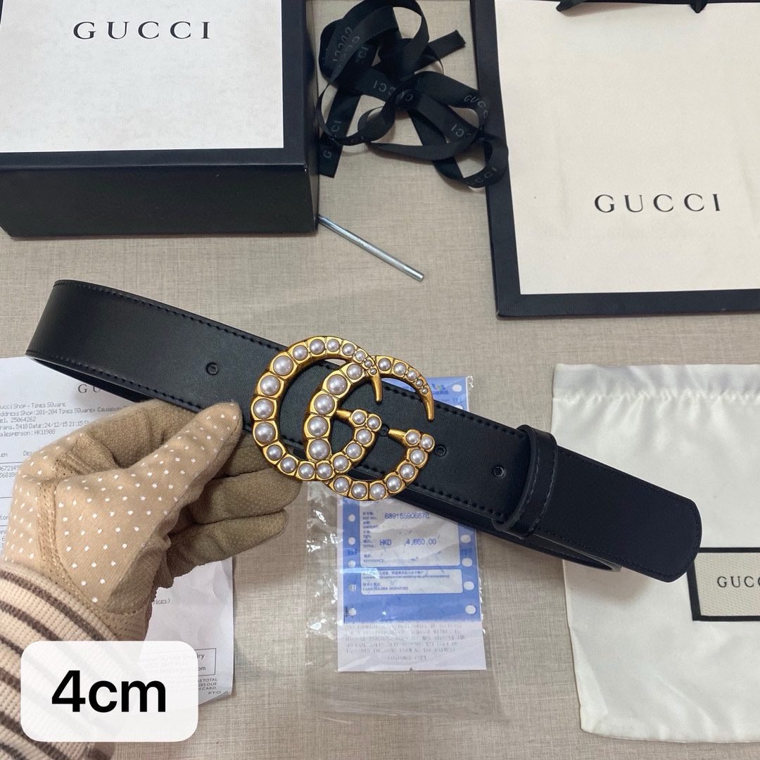 Gucci’s pearl gold double G black men’s belt incorporates the brand’s iconic double G design and is presented with an exquisite gold metal buckle, showing nobility and extraordinary. The buckle is inlaid with white pearls of even size, like stars, which not only reflects the luxury of the belt, but also adds a touch of romance to it. The belt is made of high-quality leather, soft, comfortable and durable, making it a great choice to show your taste