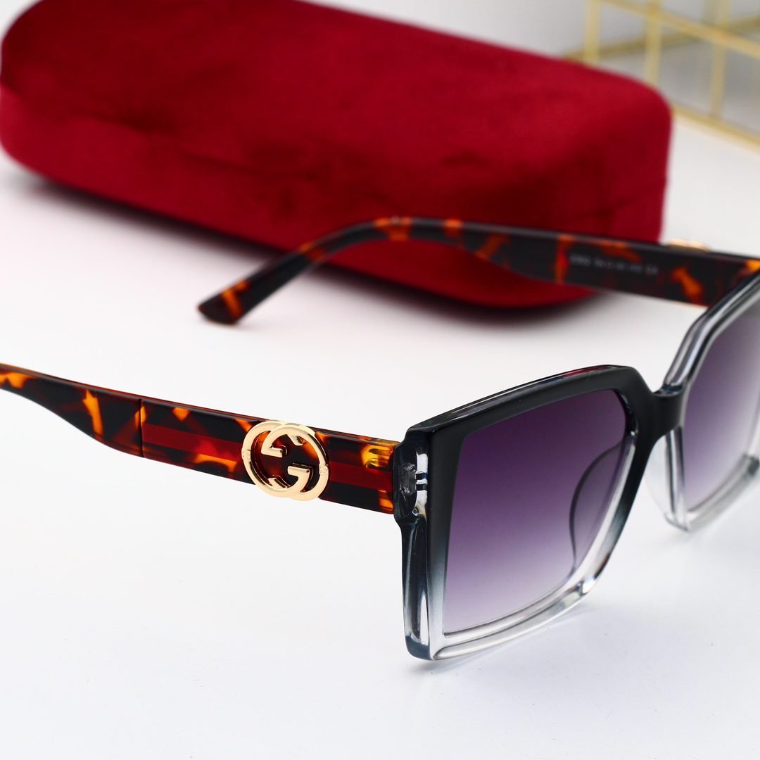It adopts a square design, which is both classic and highlights the wearer’s unique personality. The embellishments on the frame add a luxurious feel to the sunglasses, making them stand out among numerous fashionable items. The lenses present a gradient effect, which is not only fashionable but also effectively prevents UV damage to the eyes.