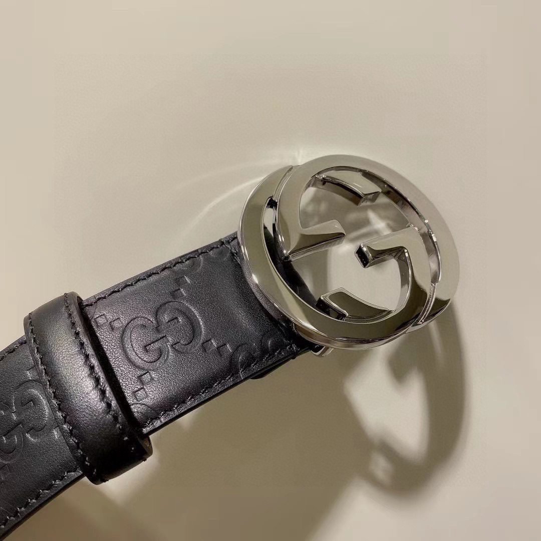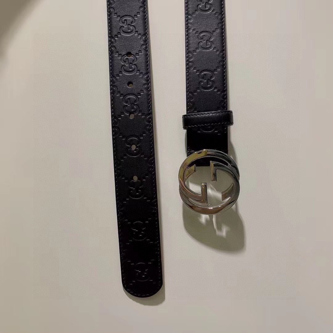This Gucci silver G buckle black textured fashion belt perfectly combines the brand’s classic elements with modern aesthetics. The black belt is made of high-grade leather, which is soft and elastic to the touch, with a natural luster, showing a low-key sense of luxury. The silver G buckle is the brand’s iconic design, showing excellent quality with exquisite craftsmanship and delicate lines, making the wearer easily become the focus.