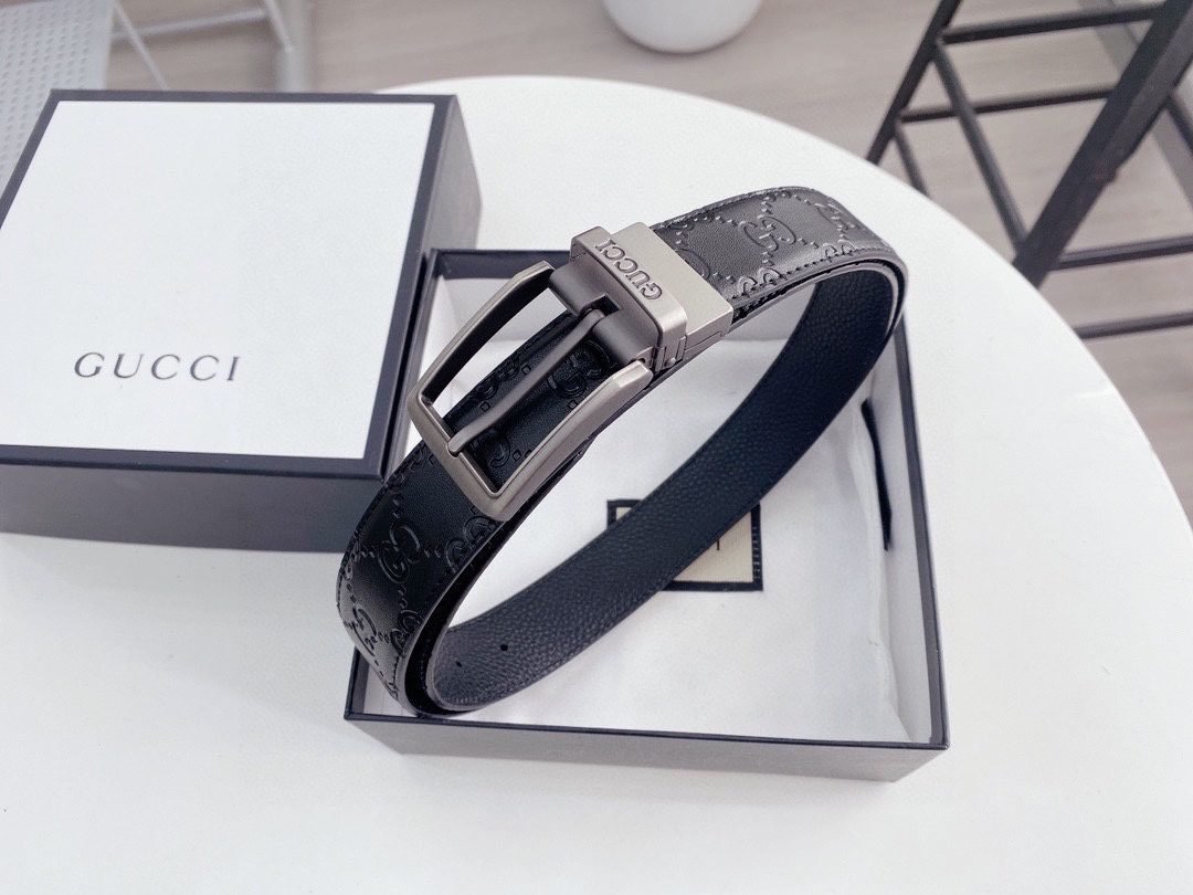 Gucci silver square buckle black belt, simple and elegant, elegant and noble